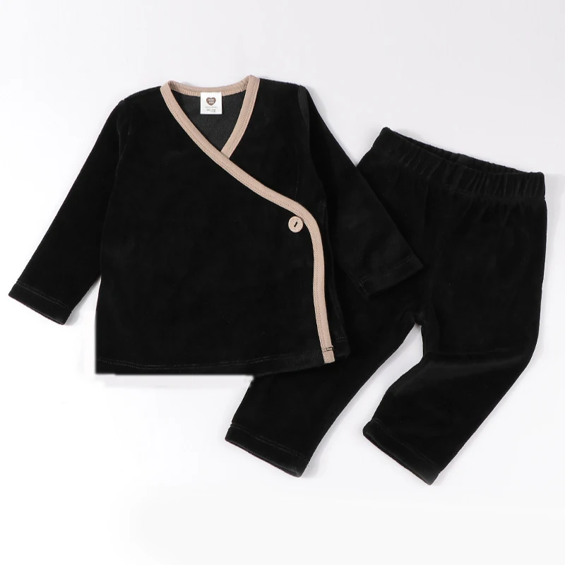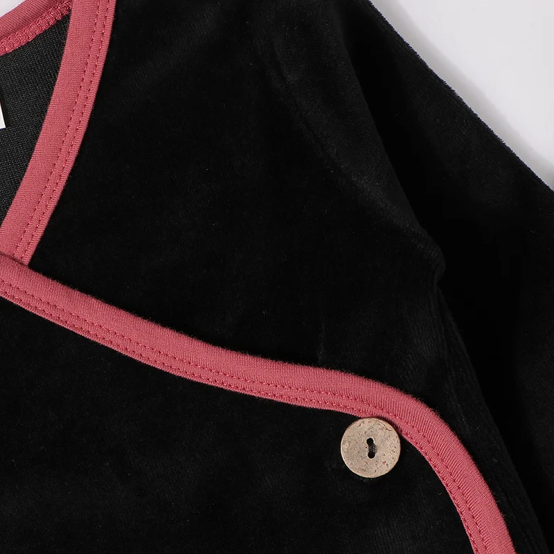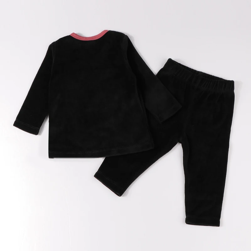 Велюровая одежда для малышей Длинный топ/штаны, комплект из 2 предметов, детский повседневный комплект, контрастная детская одежда черного цвета, открывающаяся сбоку одежда