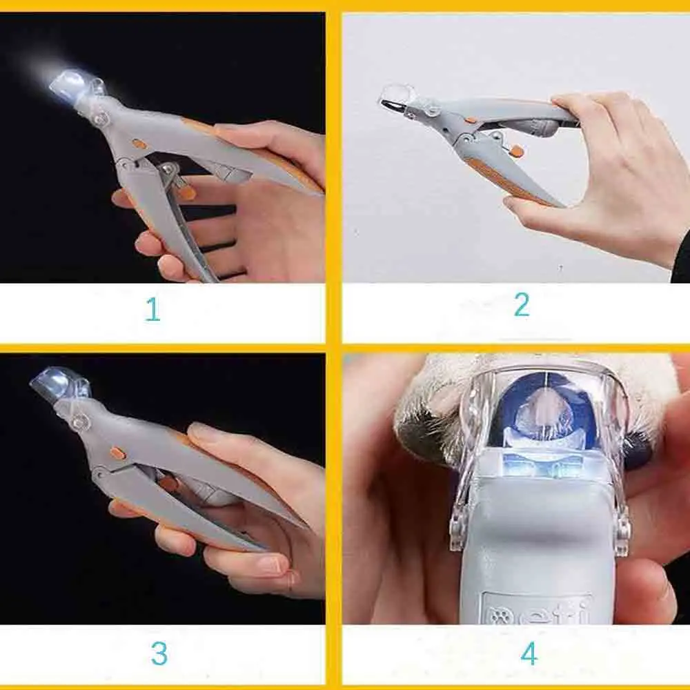 Примечание: Только цветной и прозрачный светильник может использоваться для подсветки линии кровотечения, а темные ногти не могут видеть линию кровиПосылка включает:1 шт Профессиональные питомцы кусачки для ногтей (3 LR33/AG44 батареи включены)