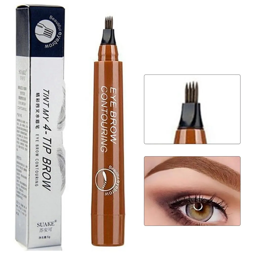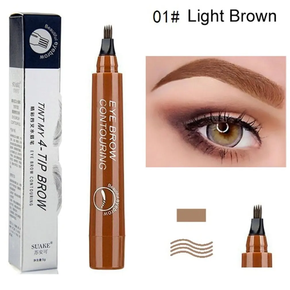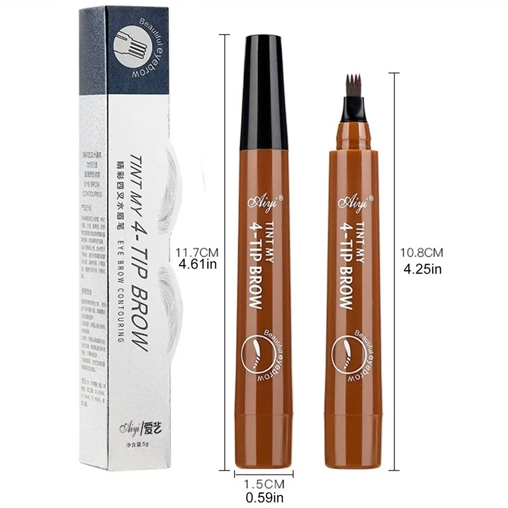 Микро-скульптурный карандаш для бровей с четырьмя вилками стойкий Натуральный жидкий карандаш для бровей с четырьмя головками