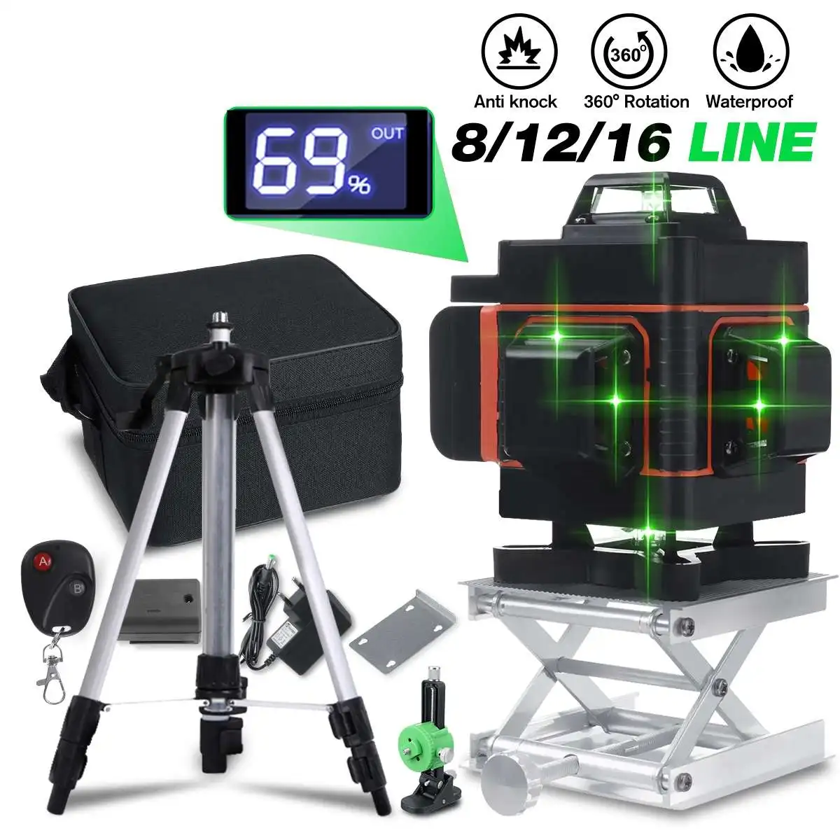 16128 линий лазерных уровней 4D3D светильник свет горизонтальный и вертикальный крест 360 автоматический самонивелирующийся лазерный уровень со штативом и пультом дистанционного управления