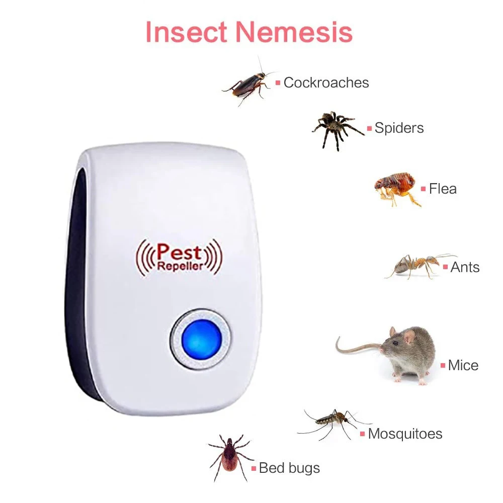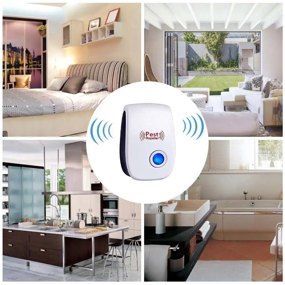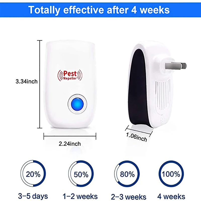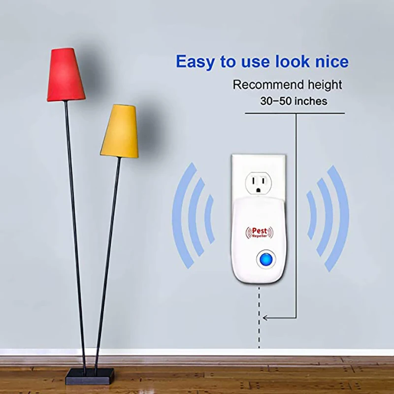 -Просто Подключите электронный ультразвуковой репеллент для борьбы с вредителями к розеткам питания, и он начнет отпугивать вредителей, когда вы заметите, что включен синий Ночной светильник.