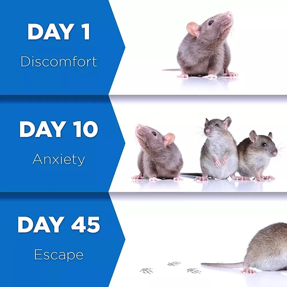 -Ультразвуковой Отпугиватель вредителей работает с низкочастотными ультразвуковыми волнами, отсутствие шума в доме может повлиять на вас и ваших питомцев.
