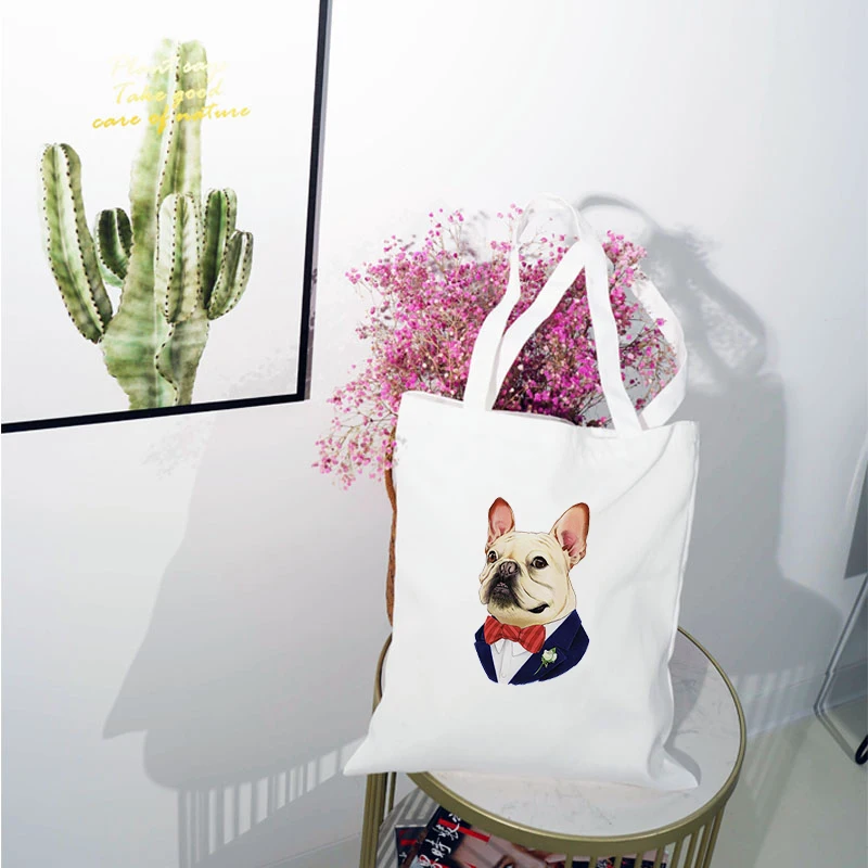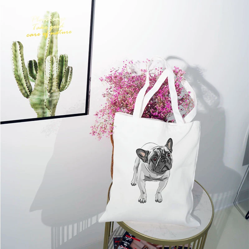 Милая ручная сумка Bulldog для женщин, пляжный тоут на шнурках, большие повседневные женские аниме шопперы для покупок, многоразовые, на лето