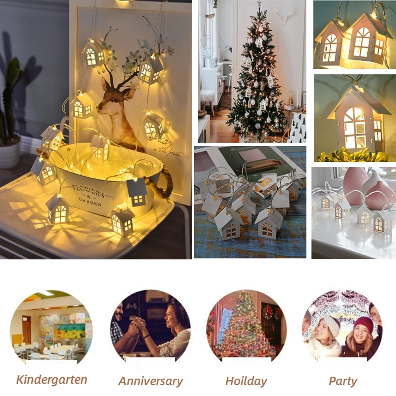 2 м 10 светодиодов деревянный дом струнный светильник сказочная гирлянда Рождественское украшение Свадебные патио вечерние новогодние лампы
