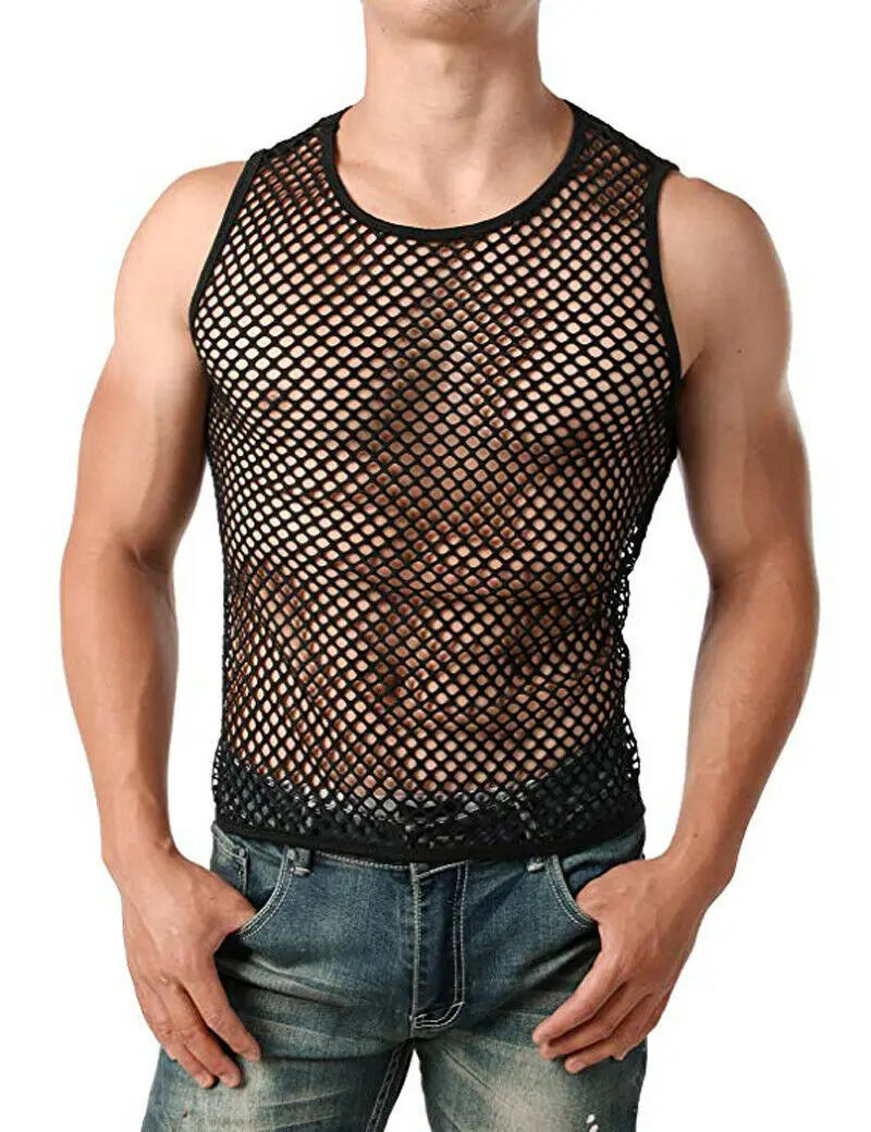 Мужская прозрачная сетчатая майка, нижнее белье, Прозрачная майка