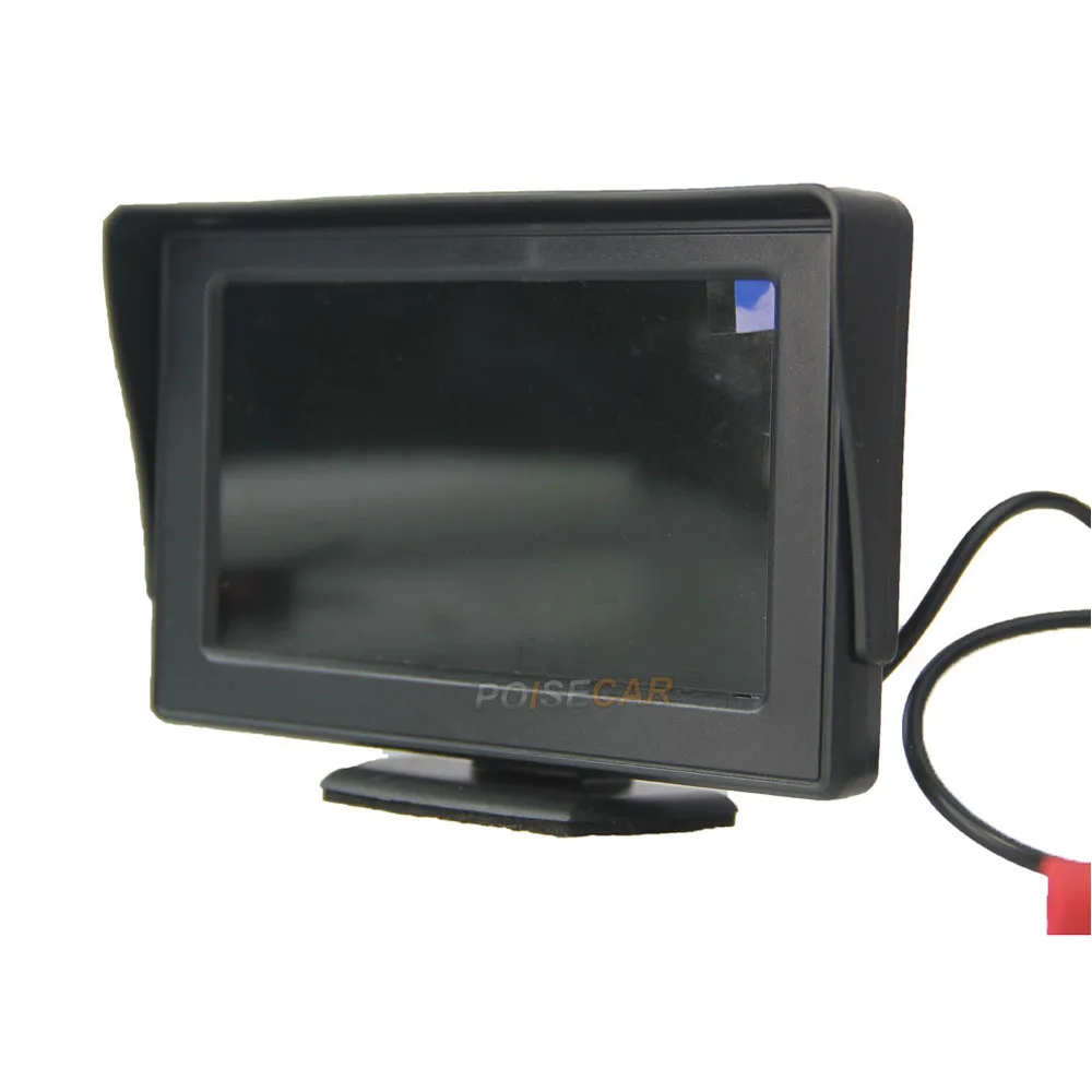 Описание монитора:Экран Размер: 4,3 дюймов Формат дисплея: 16:9Контраст: 300:1, разрешение: 480*232Напряжение питания: 12 В постоянного тока, потребляемая мощность;<= 6 ВтТип товара: помощь при парковкеОперационная система: PAL/NTSCВидео вход: V1/v2.автоматический переключательРабочее напряжение: 9-16 В постоянного токаТемпература хранения:-40 ~ 60 градусов ЦельсияРабочая температура:-40-60 градусов ЦельсияМарка автомобиля: все автомобилиХарактеристика:1. Изготовлен из высококачественного и прочного материала2. Высокое разрешение и широкие углы обзора3. Поддержка цветного изображения CCD4. Поддержка ТВ-системы NTSC5. С хорошей водонепроницаемой функцией6. Благодаря элегантному и современному дизайну эта камера очень популярна7. Когда автомобиль вернется, изображение покажет обратную линию8. С 8 ИК вокруг камерыХарактеристики камеры:1. Датчик: PC70702. Пиксель: 628X5823. Разрешение: 580TV линии4. Рабочая температура: от-20 °C до 60 °C5. Источники питания: постоянный ток: 9V-14V6. Ток: DC12V> = 100 мА7. Угол Линзы: 170 градусов8. Длина видеокабеля: 6 м9. Мощность Длина шнура: 1,5 м