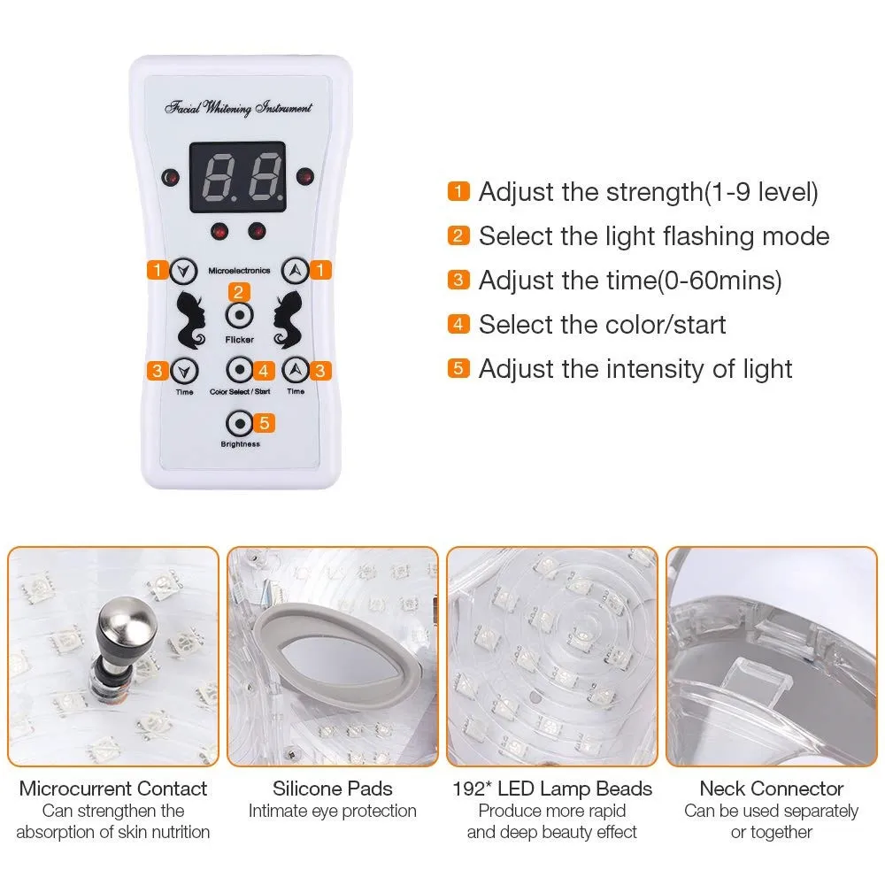 7 цветов Светодиодная светодиодный КА для лица Омоложение светодиодный светодиодная маска фототерапия уход за лицом отбеливающая маска для удаления морщин