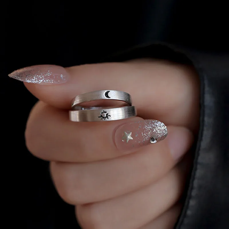 Модное женское мужское Открытое кольцо с солнцем и луной, минималистичное серебряное регулируемое кольцо с солнцем для пары, ювелирные изделия для помолвки лучшего друга