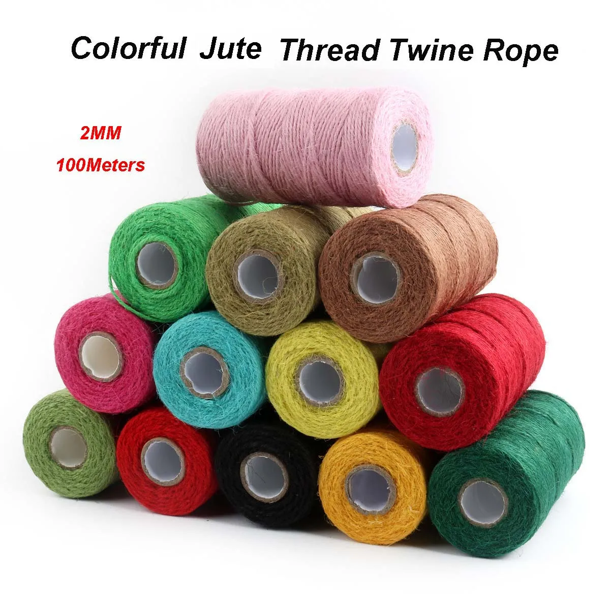 Цветной яркий джутовый шпагат 100 мрулон 2 мм, нить, шнур ручной работы, ремесла сделай сам, веревка, цветная подарочная упаковка, строка