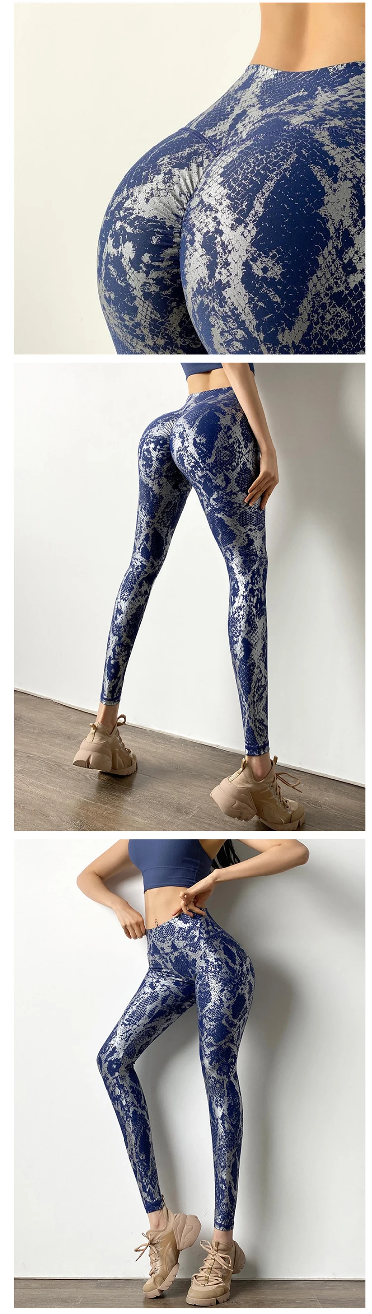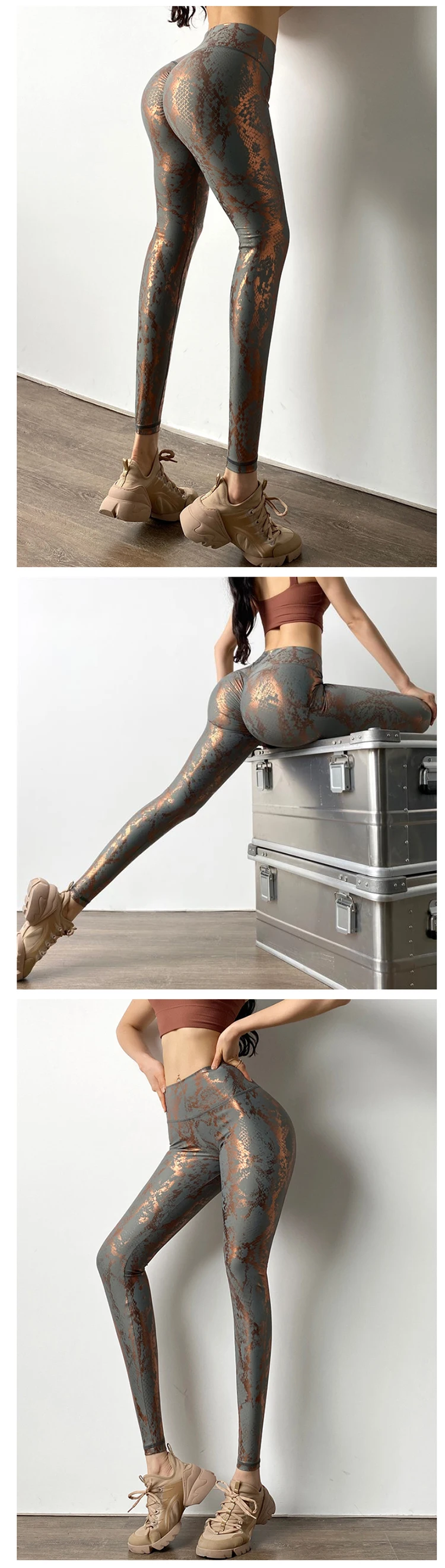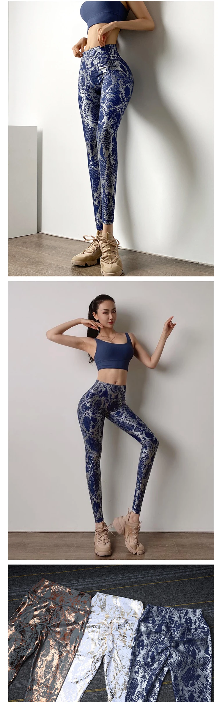 SnakeskinYoga брюки для фитнеса с высокой талией подтягивающие ягод...