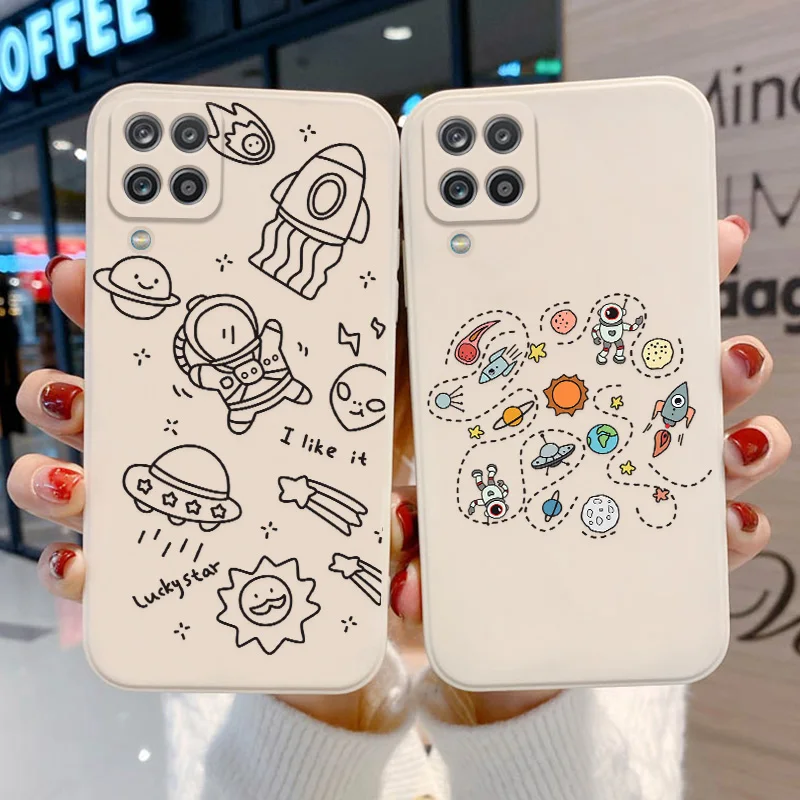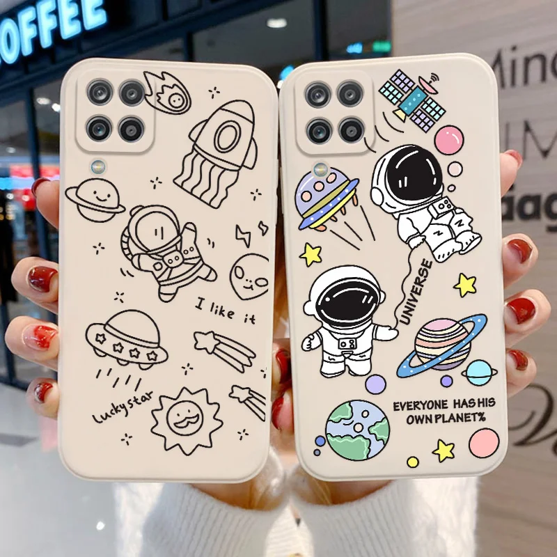 Чехол из жидкого силикона для Samsung A12, A52, A50, A71, A31, M12, чехол с рамкой для астронавта, чехол для телефона Samsung A10, A32, A51, A 32, 12, чехлы
