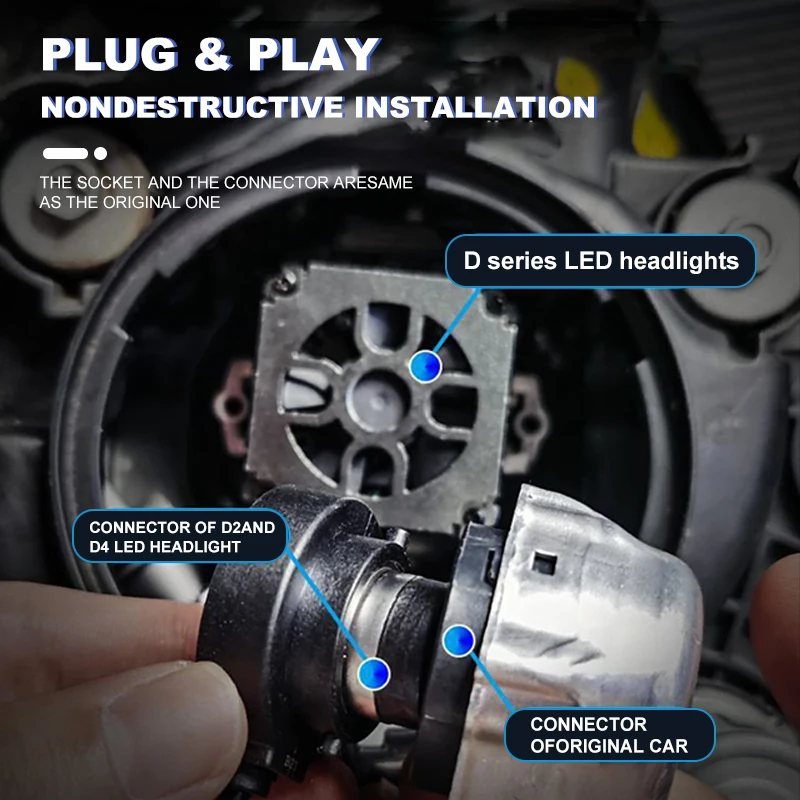 Почему стоит выбрать светодиодный комплект ламп для автомобилей?Хорошо известные HID лампы были оптимальным источником светильник на транспортных средствах с начала 21 века. С появлением технологии светодиодный светильник, улучшенный выход и надежность, светодиодный-это новая альтернатива и замена. Роскошные автомобильные производители, такие как Audi, включают светодиодный светильник в качестве основного источника в своих автомобилях и полностью медленно отказываются от HID.Преимущества продукта:Этот продукт напрямую совместим с оригинальным автомобильным балластом HID. Действительно достигает неразрушающего обновления, не нужно вносить какие-либо изменения в линию, не повреждает оригинальную машину AFS и вспомогательную функцию. 100% декодирование.Высокая яркость, HLXG светодиодный + 200% ярче, чем оригинальный автомобиль HID;0,01 S является мгновенно яркий, никаких задержек Высокая мощность Зеленая лазерная указка, видеть дорогу состояние раннего;Долгий срок службы, до 50000 часов жизни, в 10 раз больше, чем у HIDИнформация о продуктеНапряжение: 12V-24VМощность: 90 Вт/пара L/45 Вт в/45 ВтЛюмен (яркость): 20000LM/параЦветовая температура (цвет): 6000KСрок службы: >50000 часовЧип: для фирменного чипаУровень водонепроницаемости: IP68Вентилятор: Турбо-высокоскоростной вентиляторОхлаждение сплава: алюминий + вентилятор охлаждения (12000 об/мин)Рабочая температура:-40-90 ℃Гарантия: 1 годCanbus: С canbusПосылка: 2 лампочки в одной коробкеПредварительная установка lnspection, lmportant вопросы:1. Этот продукт подходит только для модернизации оригинального автомобиля с функцией ксеноновой лампы HID. Не подходит для обновления модели галогенной лампы.2. В настоящее время Доступные модели: D1S/D1R/D2S/D2R/D3S/D3R/D4S/D4R/D5S/D8S3. Убедитесь, что HID балласт оригинального автомобиля может работать должным образом