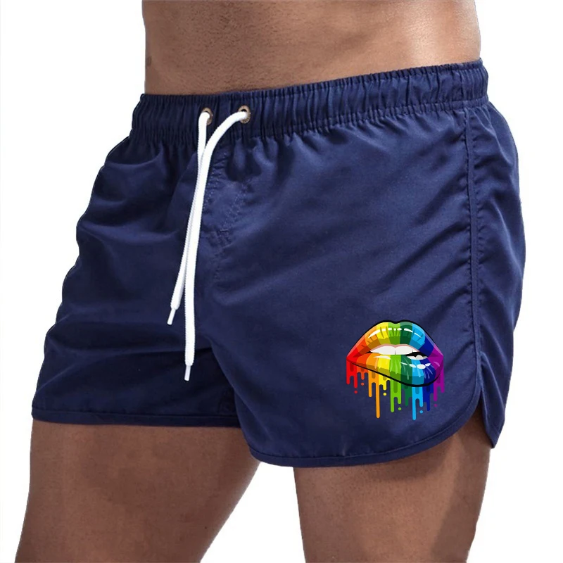 Летние мужские шорты с принтом губ, Спортивные Повседневные Дышащие тренировочные свободные мужские пляжные брюки конфетных цветов