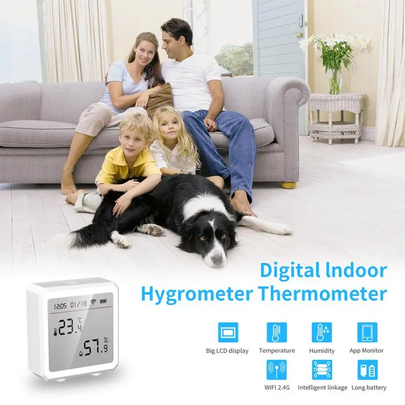 Датчик температуры и влажности Tuya Wi-Fi, комнатный гигрометр, термометр с поддержкой Alexa Google Home Smart Life