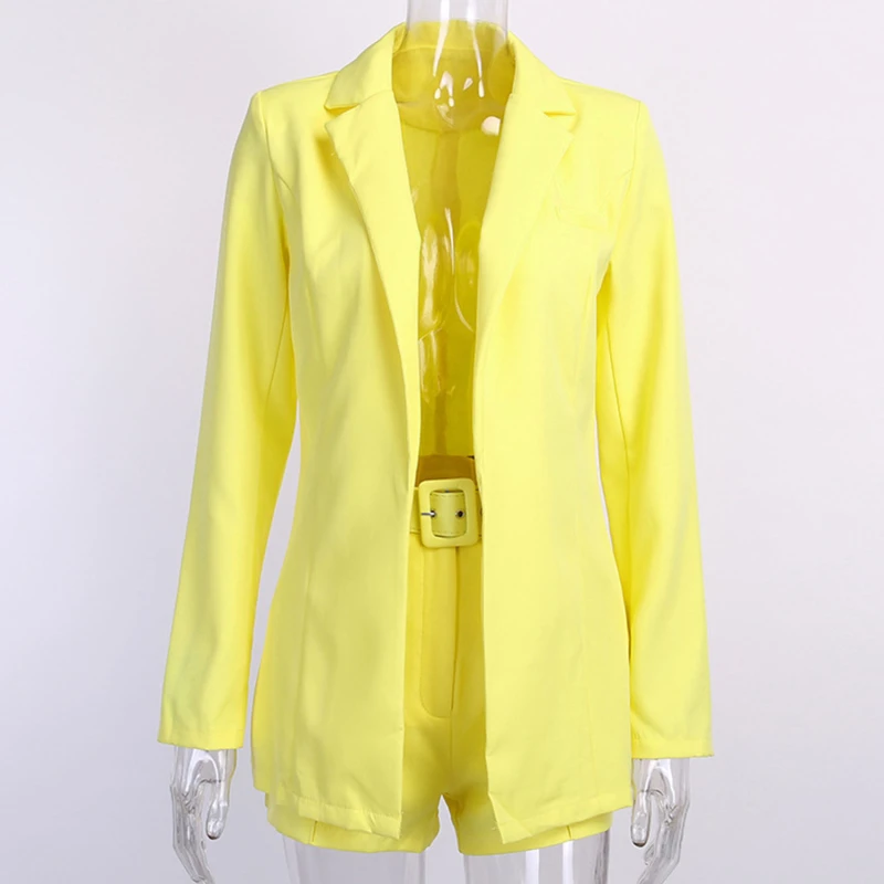 Женский костюм с жакетом и шортами, повседневный однотонный костюм ...