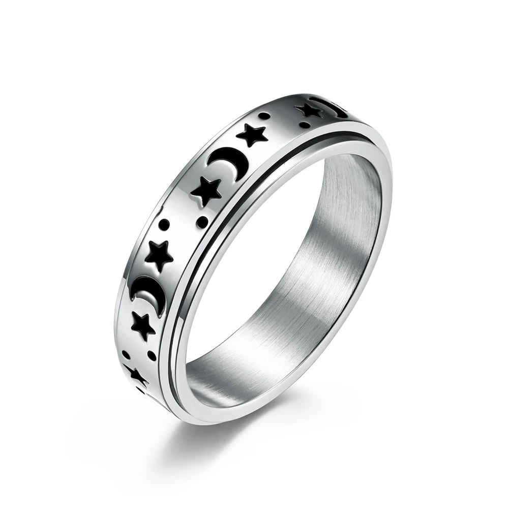 Кольцо-Спиннер для мужчин и женщин, нержавеющая сталь, луна, звезда...