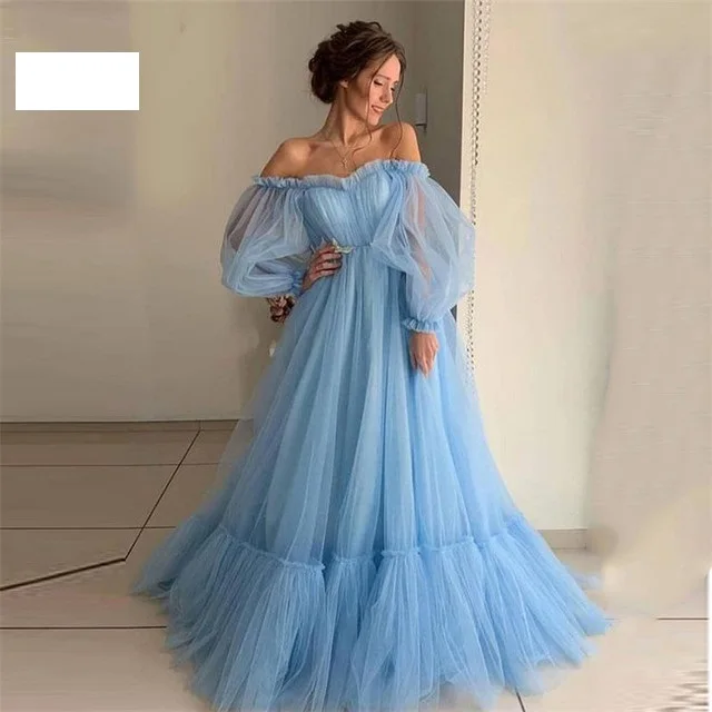 LORIE синие Выпускные платья с длинным рукавом с открытыми плечами ...