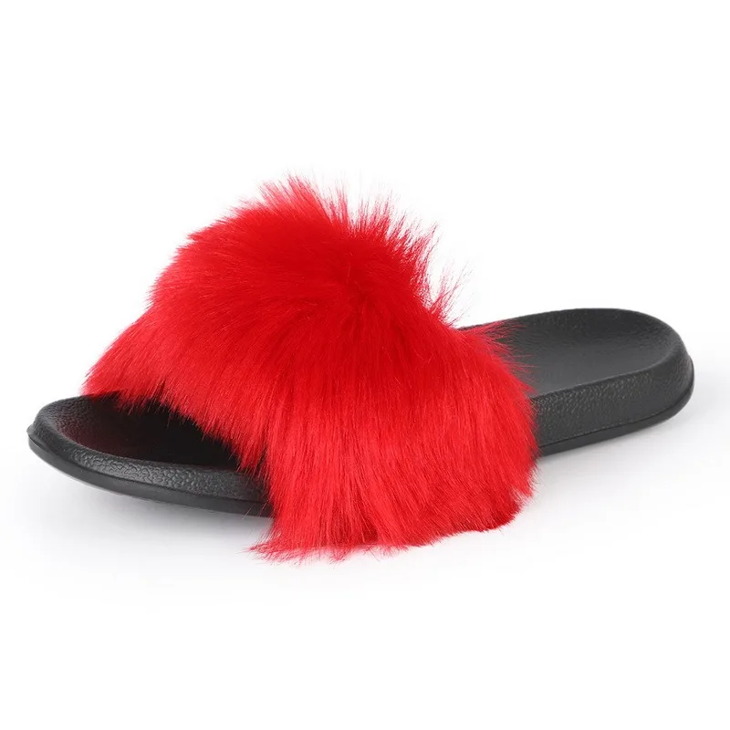 Шлепанцы женские для дома, натуральный мех лисы, сланцы, повседневные сандалии с Raccon, пушистая плюшевая обувь, Лидер продаж, на лето