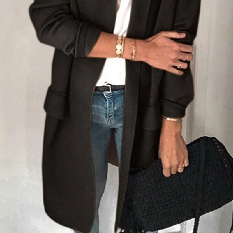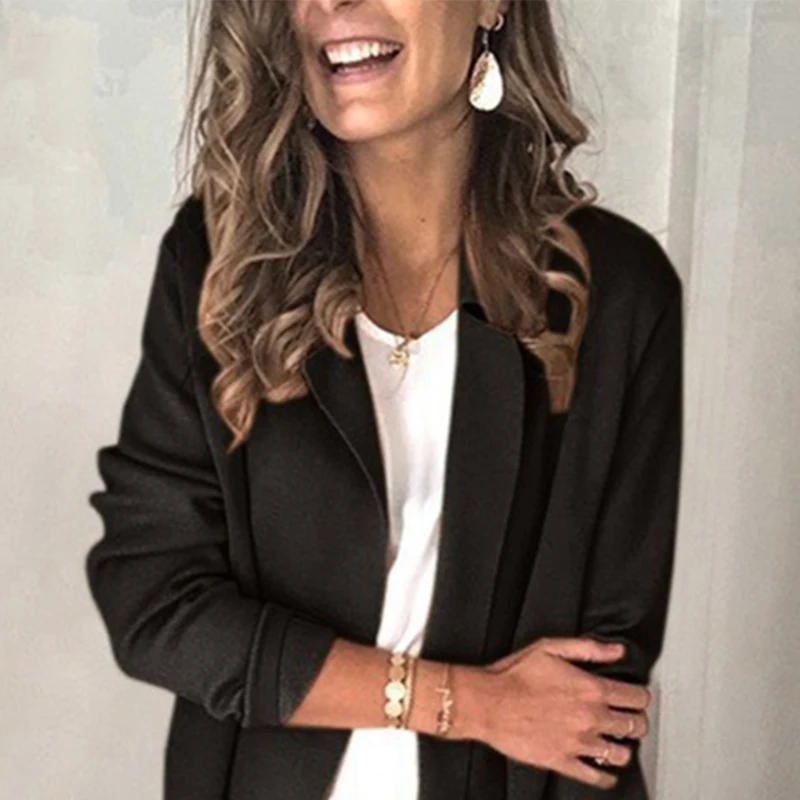 Новый женский деловой Блейзер, весна-осень, универсальный, женский пиджак, приталенный, с длинным рукавом, однотонный, женская одежда