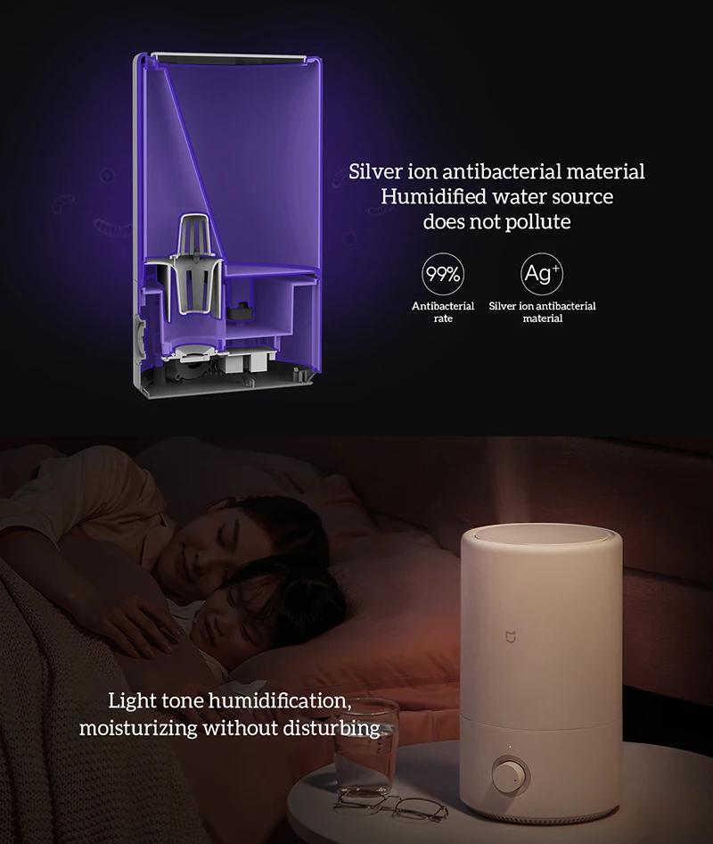 Увлажнитель Mijia уменьшает звук больших частиц водяного тумана, уменьшает шум вентилятора, а рабочий звук не превышает 38 дБ *. Световой светильник мягкий и без Ореола, и он не ослепляет в темноте. Хорошо спите с низким уровнем шума, спите и увлажните всю ночь.