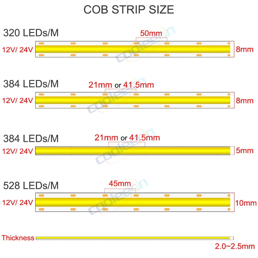 LED Strip Width5mm, 8mm, 10mm