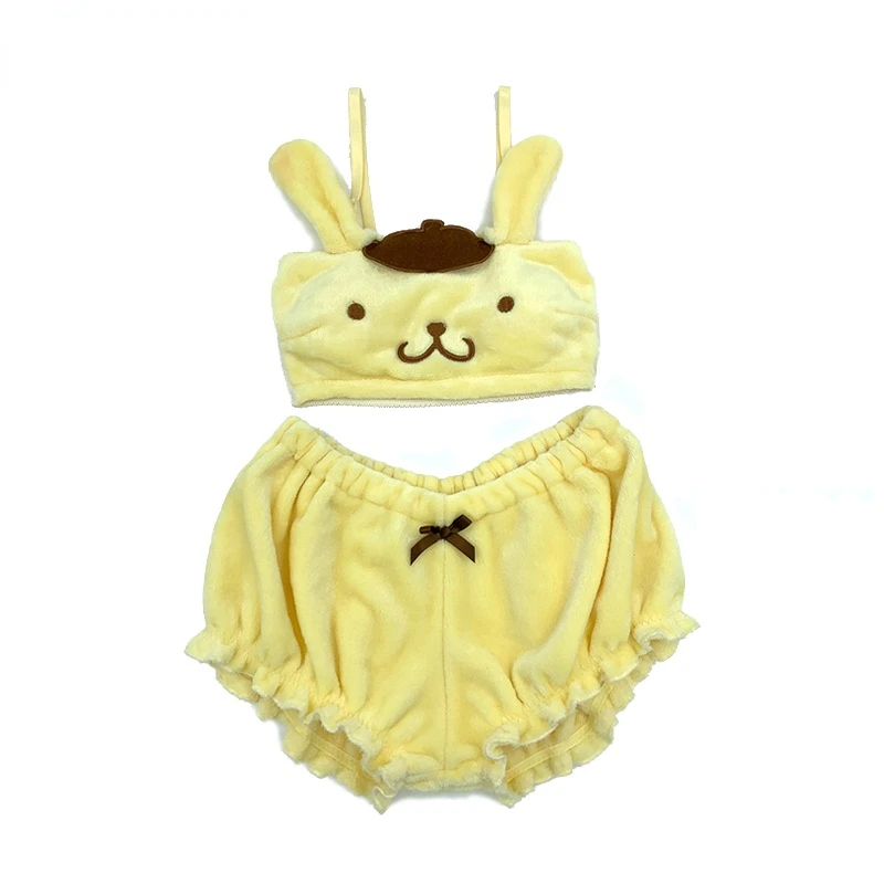 Новый Желтый милый бархатный топ-труба и шорты женское нижнее белье комплект аниме милый длинный костюм для косплея