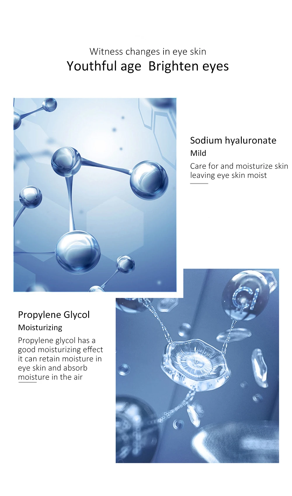 Очевидные изменения в коже глазМолодой возраст осветляет глазаГиалуронат натрияМягкийУход за кожей и увлажнение, увлажнение кожи вокруг глазПропиленгликольУвлажняющийПропиленгликоль обладает хорошим увлажняющим эффектом, он может удерживать влагу в коже глаз и поглощать влагу в воздухе