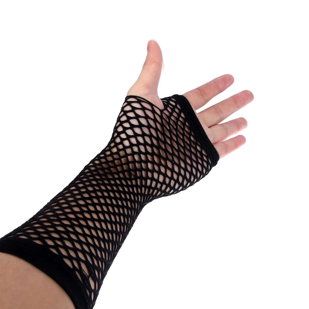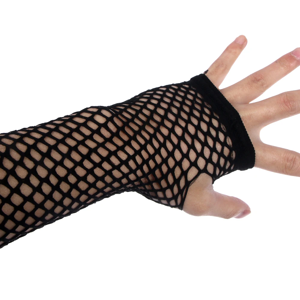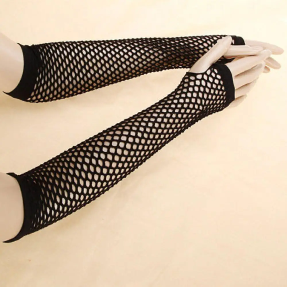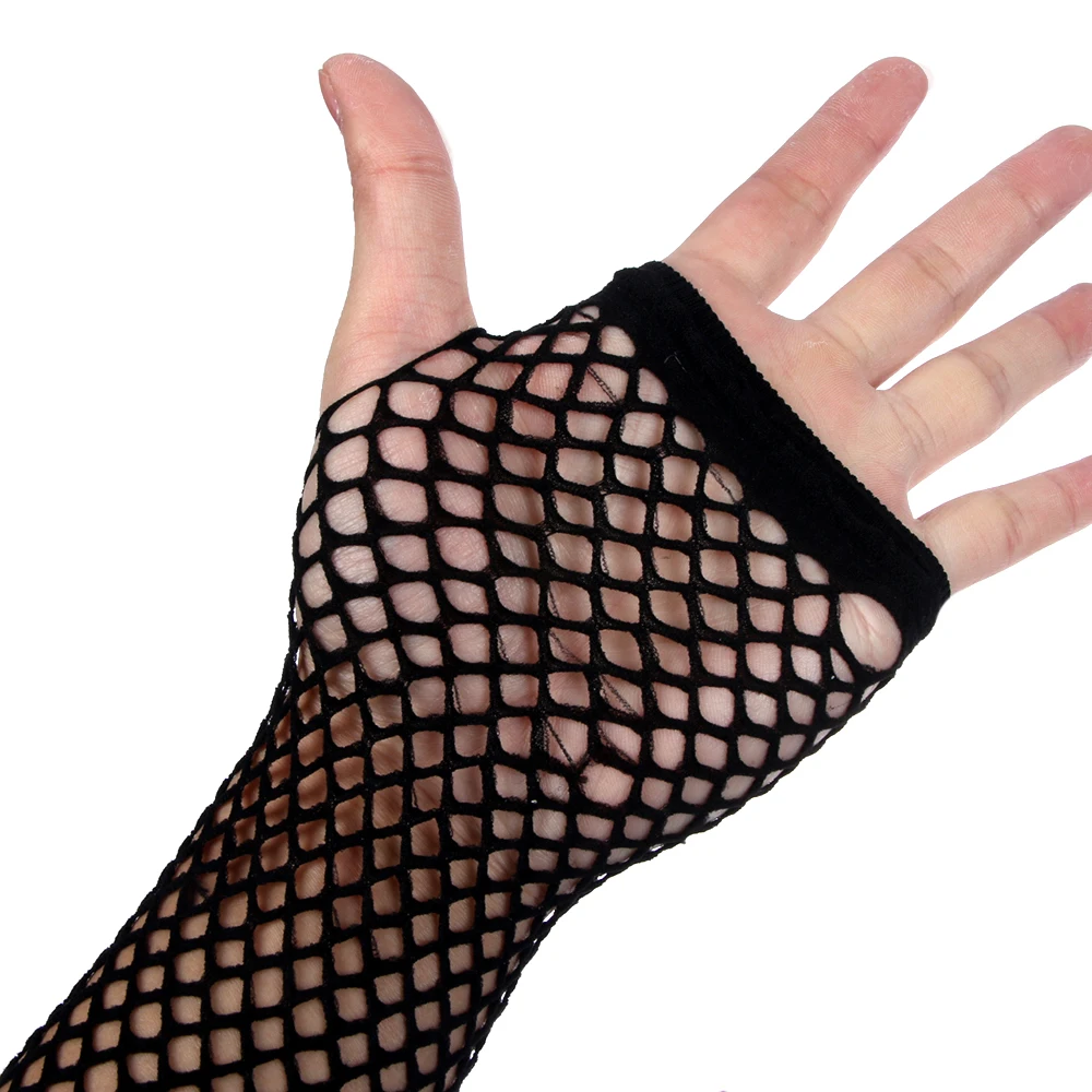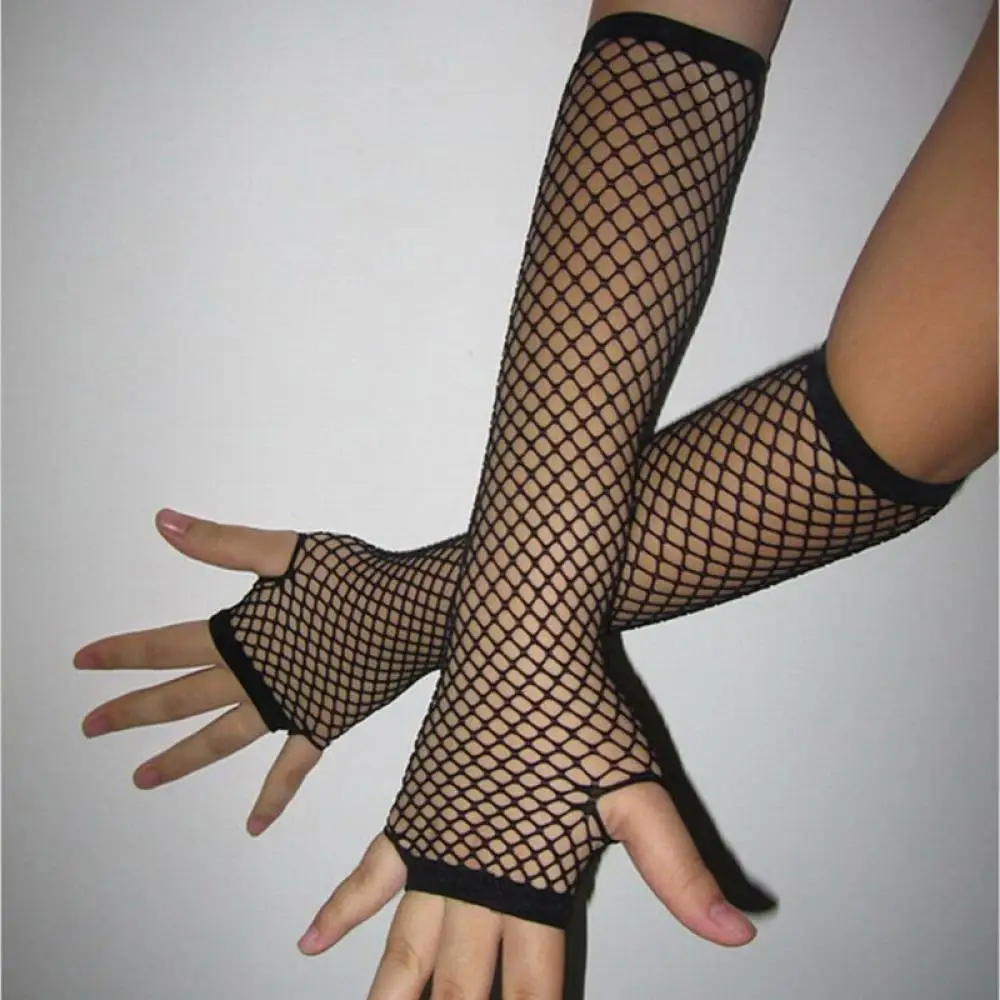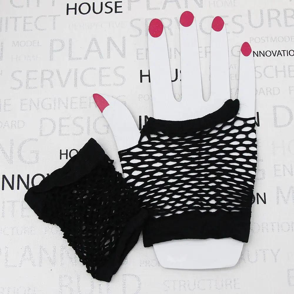 Хит, панк, готический женский танцевальный костюм в стиле диско, кружевные сетчатые перчатки без пальцев, черные