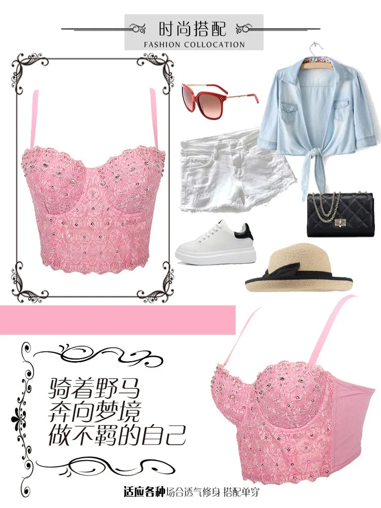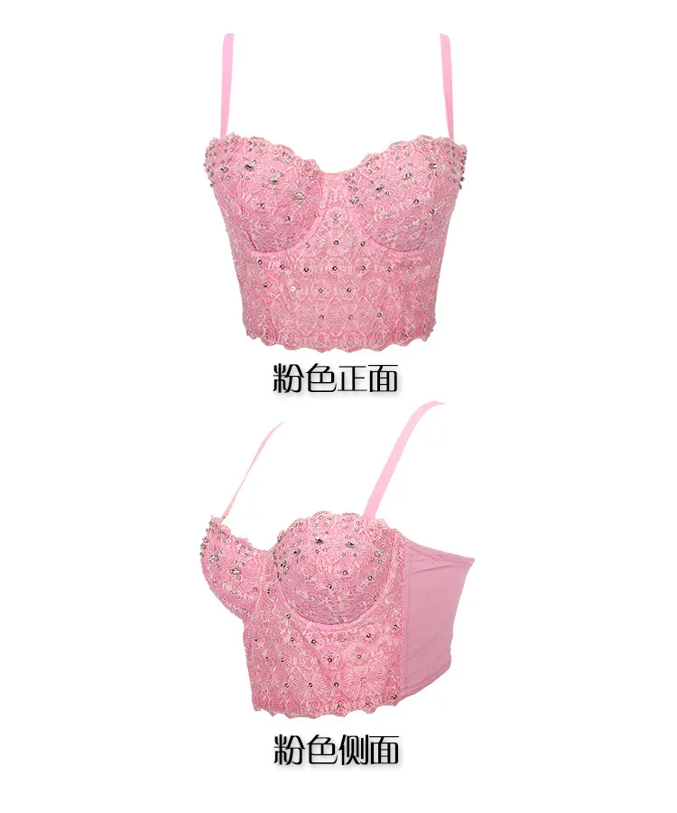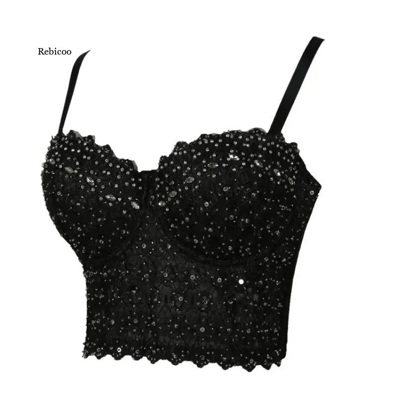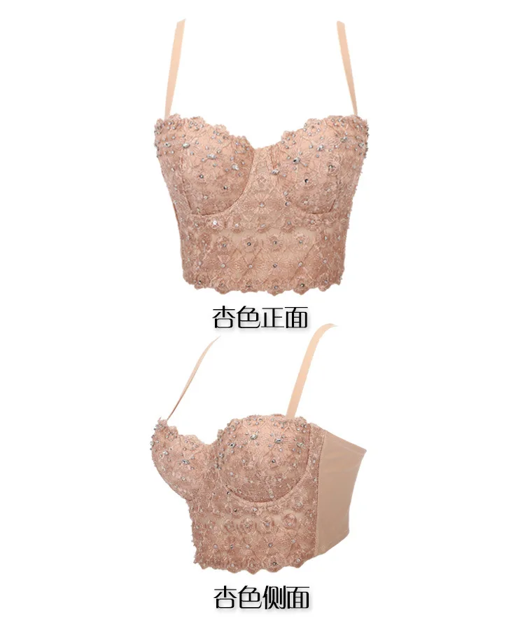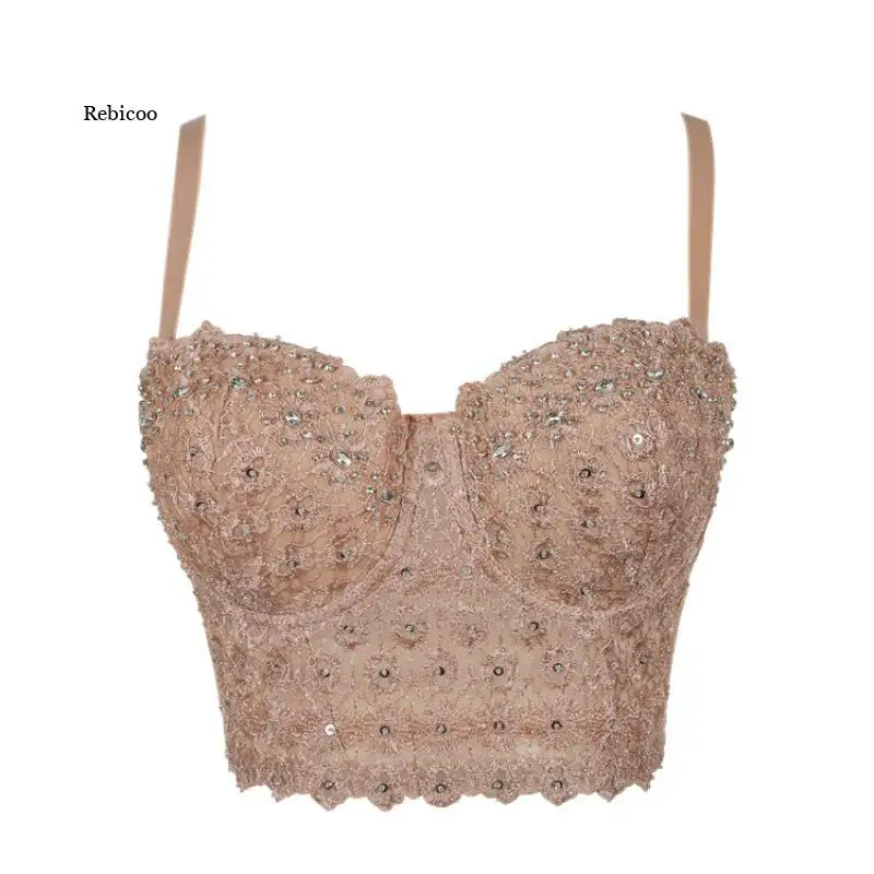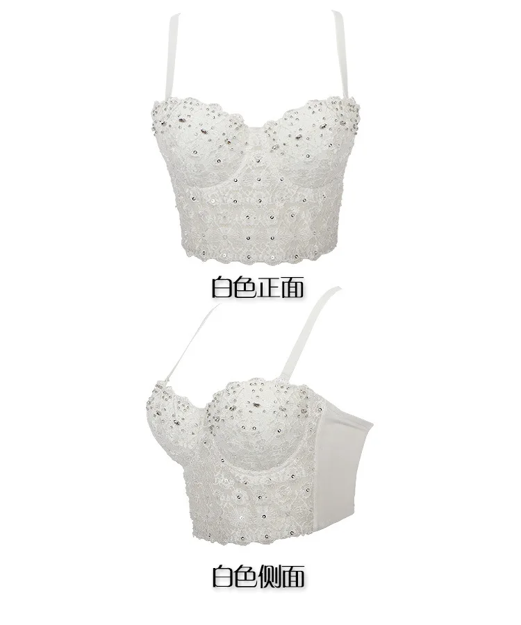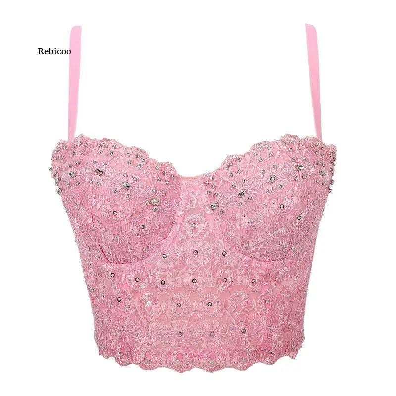 Топ женский летний кружевной с пуш-ап, пикантный укороченный Бралетт с бисером, корсет, одежда для женщин