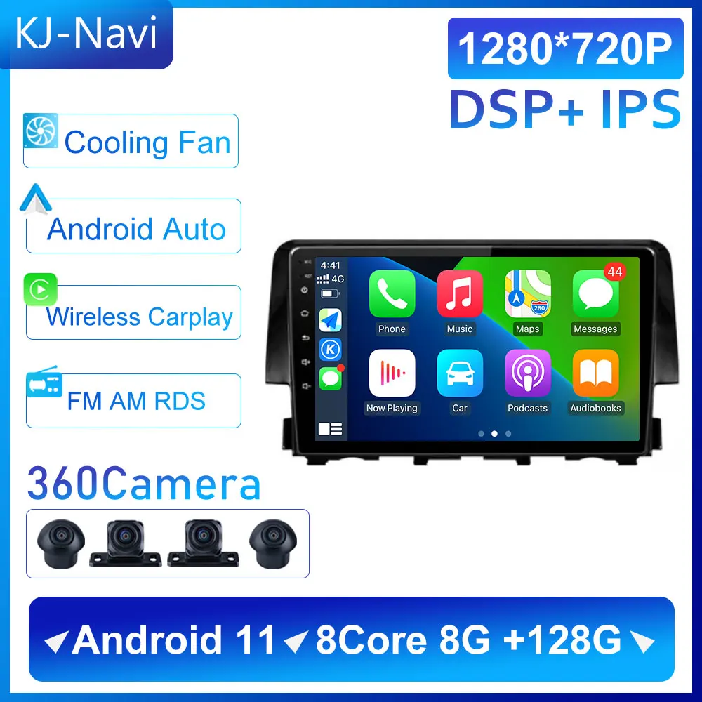 Восьмиядерный процессор для Honda Civic 2016 2017 2018 Android 11 4G LTE автомобильное радио мультимедийная навигация GPS плеер WIFI DSP RDS BLUETOOTH