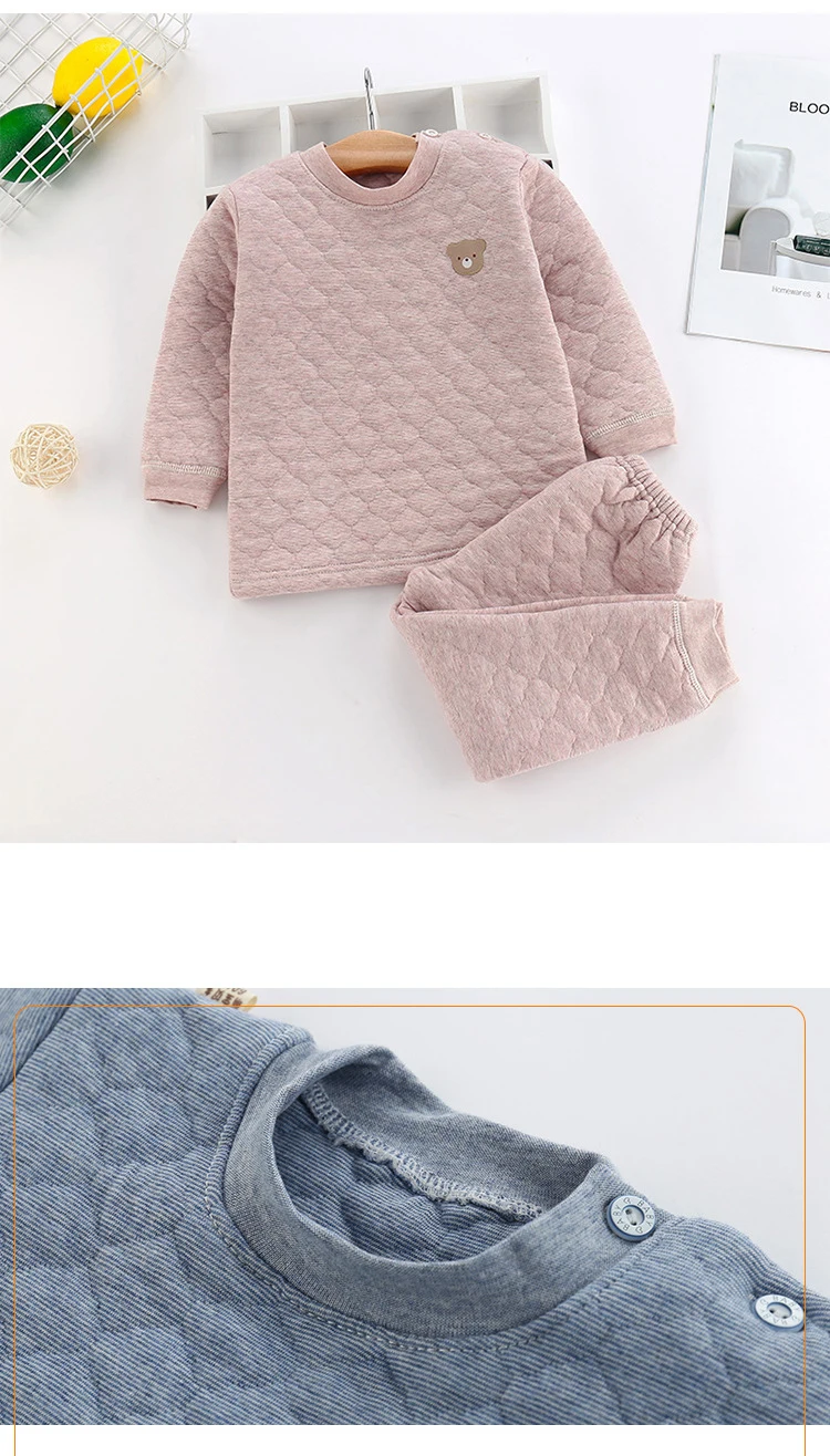 Зимняя Пижама для малышей, детская одежда, костюм, трехслойная хлопковая одежда для маленьких мальчиков, детское термобелье для девочек + штаны, одежда для сна