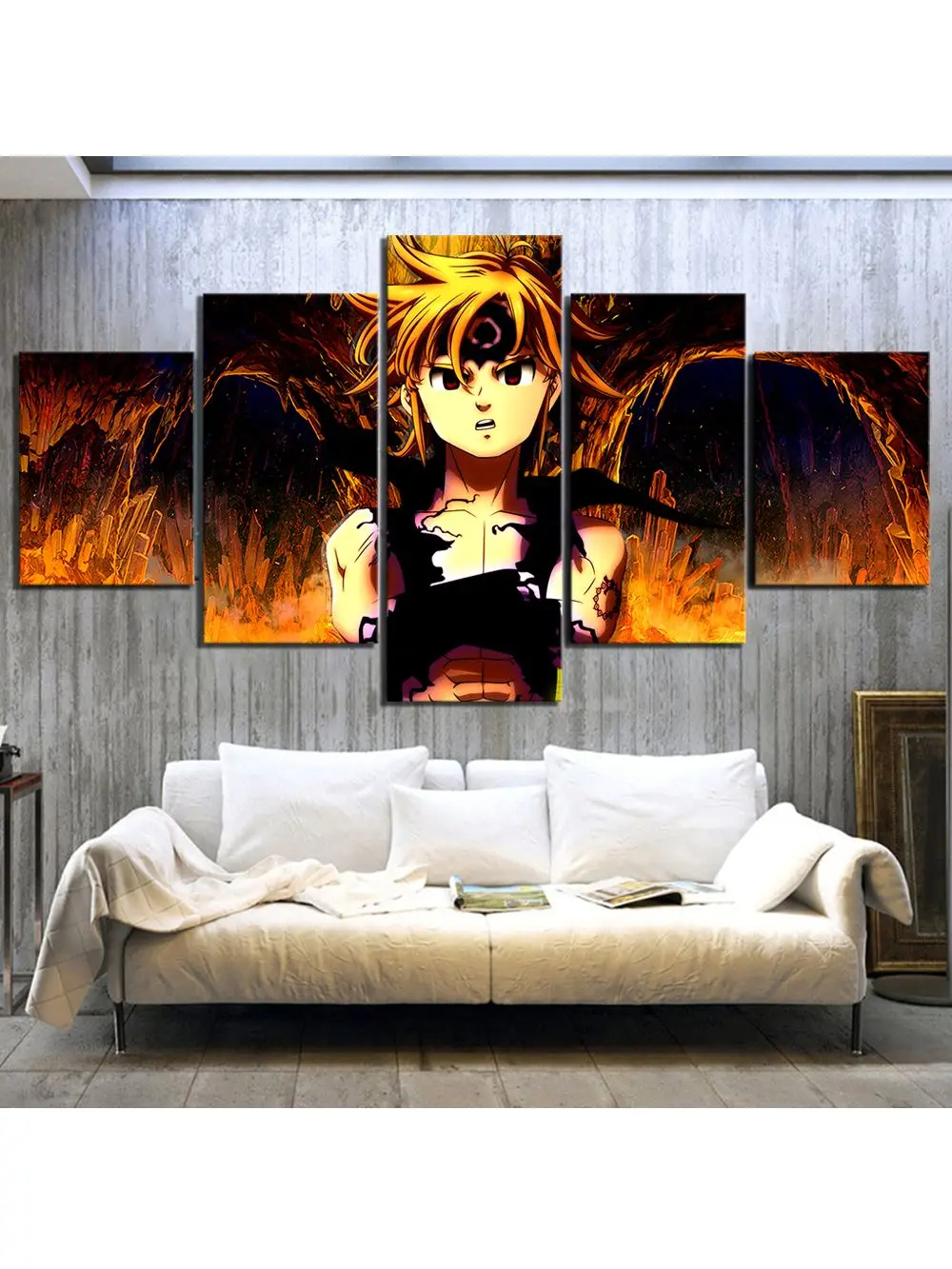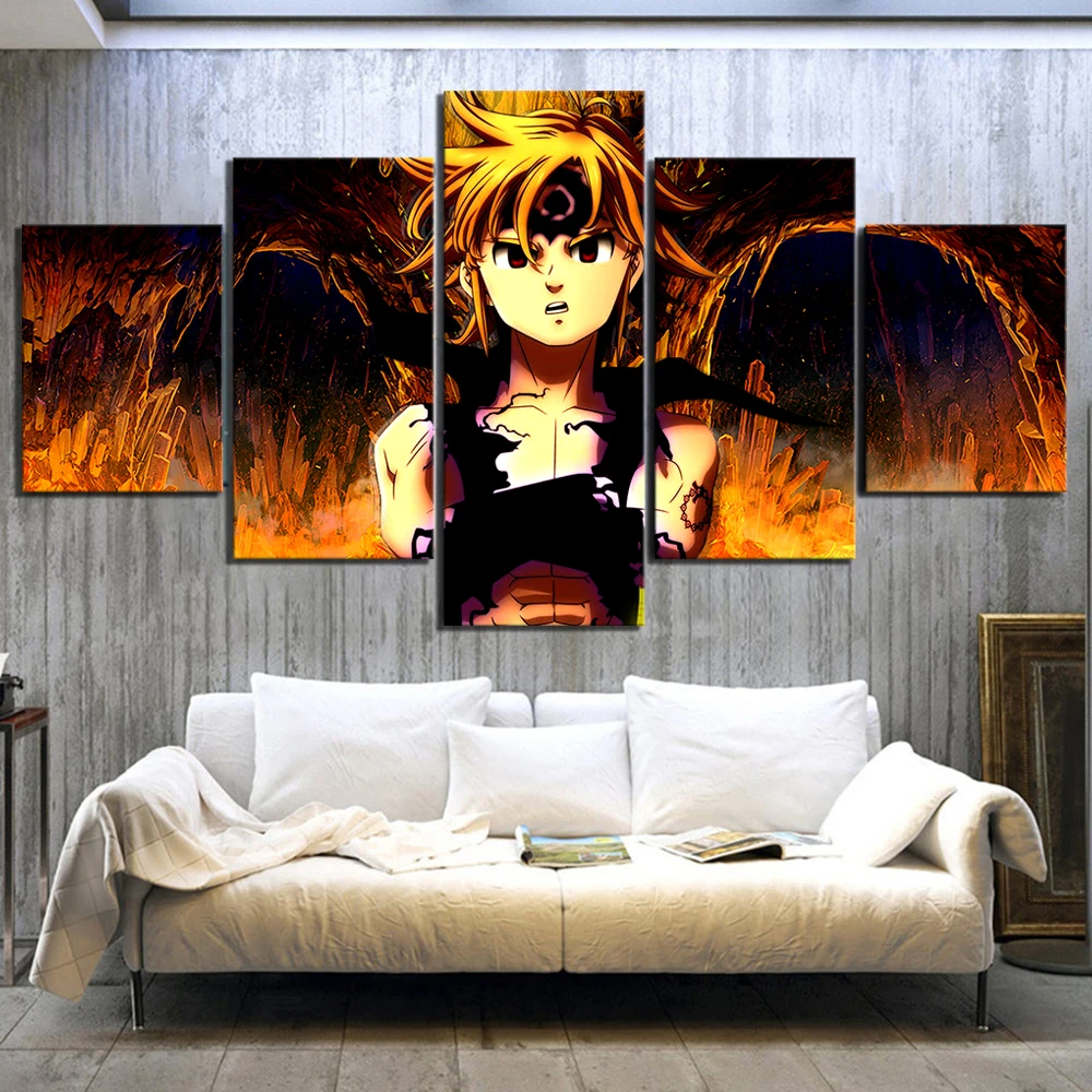 5 панелей аниме плакат семь смертных грехов Настенная картина на холсте украшение для дома картина модульные картины для гостиной рамка