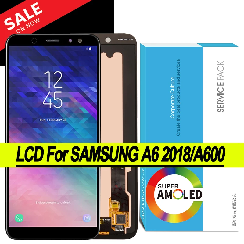 Оригинальный 5,6 ''Super AMOLED ЖК-дисплей с сенсорным экраном дигитайзер в сборе для Samsung Galaxy A6 2018 A600 запасные части