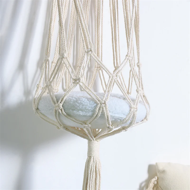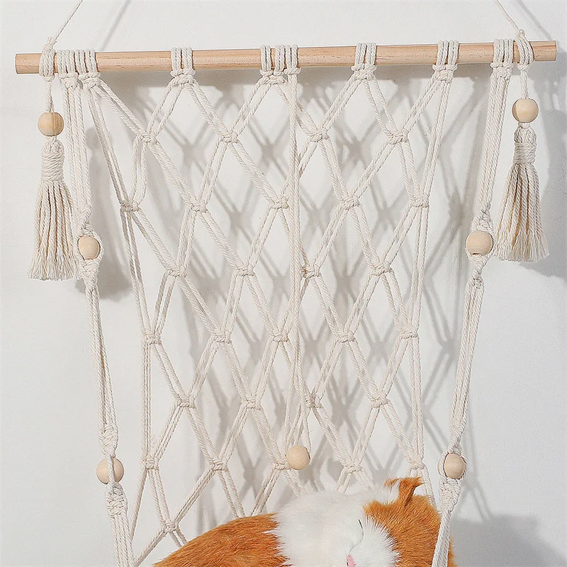 Бохо стиль макраме кошка гамак питомец Китти качели кровать клетка Висячие кресла для сна ручной работы Хлопок Веревка настенный гобелен