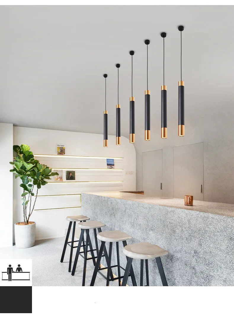 Современный светодиодный подвесной светильник с длинной трубкой, лампа черного, белого и золотого цвета для островка, бара, магазина, комнаты, кухни, освещение, освещение
