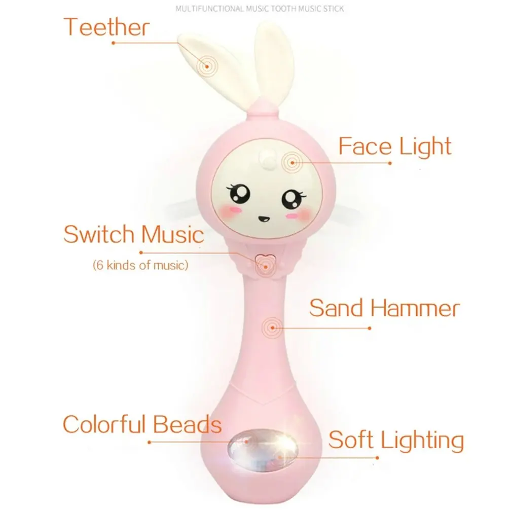 Детская Музыка мигающий прорезыватель погремушка игрушки Кролик ручной колокольчики мобильный младенецПустышка рыдать новорожденный раннего образования игрушки 0-12 мОсобенности: