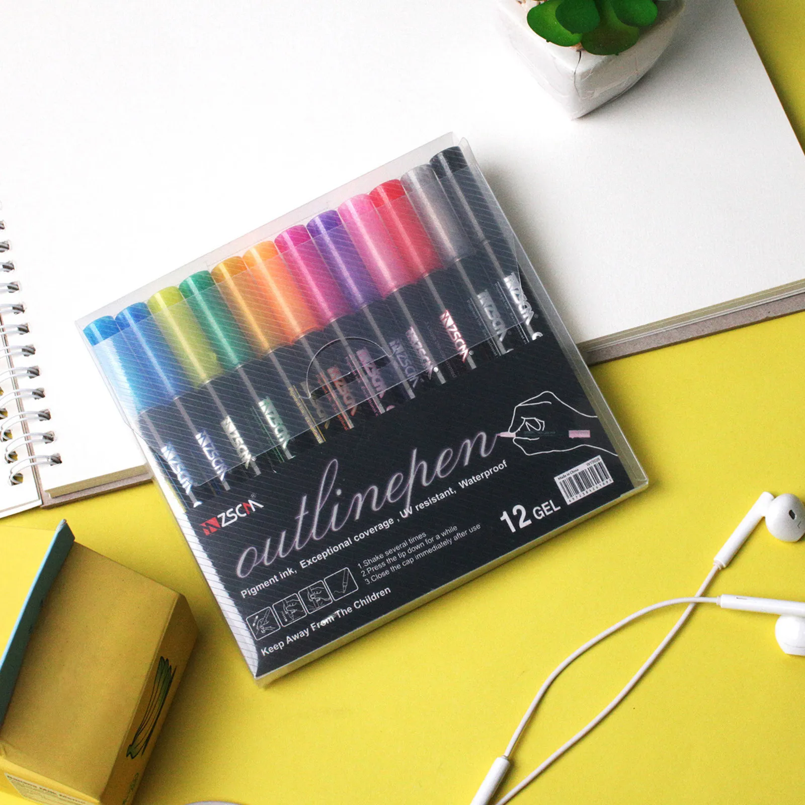 Детский металлический маркер, 1224 цвета, ручки с двойной линией, набор ручек для рисования на стекле, 5 мл, школьные принадлежности