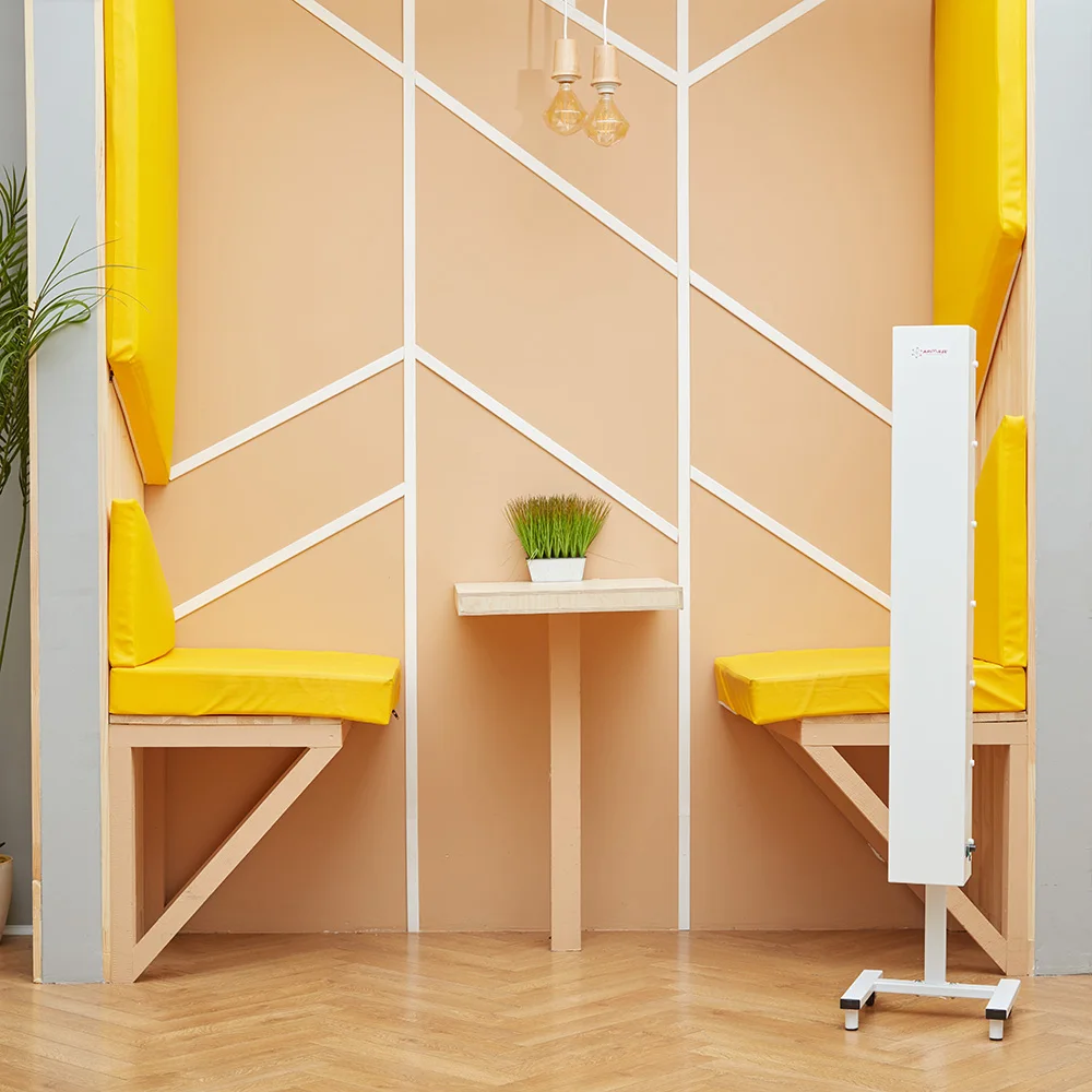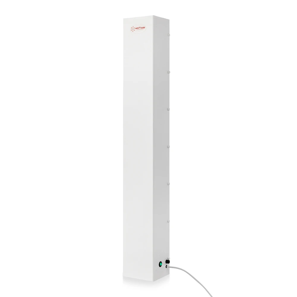 Рециркулятор обеспечивает эффективное очищение воздуха от микроорганизмов и споров плесени, являющихся причиной тяжелых заболеваний и простуд, а также снижающих иммунитет. Вентиляционные решетки расположены на верхней и нижней панелях, обеспечивая свободное перемещение воздушного потока и защищая людей и животных от прямых УФ-лучей. Пользоваться рециркулятором просто, достаточно нажать клавишу включения/выключения и прибор начнет работу.