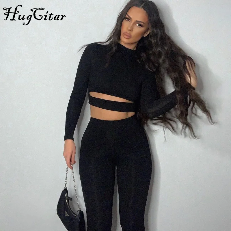 Hugcitar2021 сексуальное платье с длинными рукавами и круглым вырезом; Сезон лето-осень; Женская модная уличная одежда; Вечерние наряды; Элегантная одежда