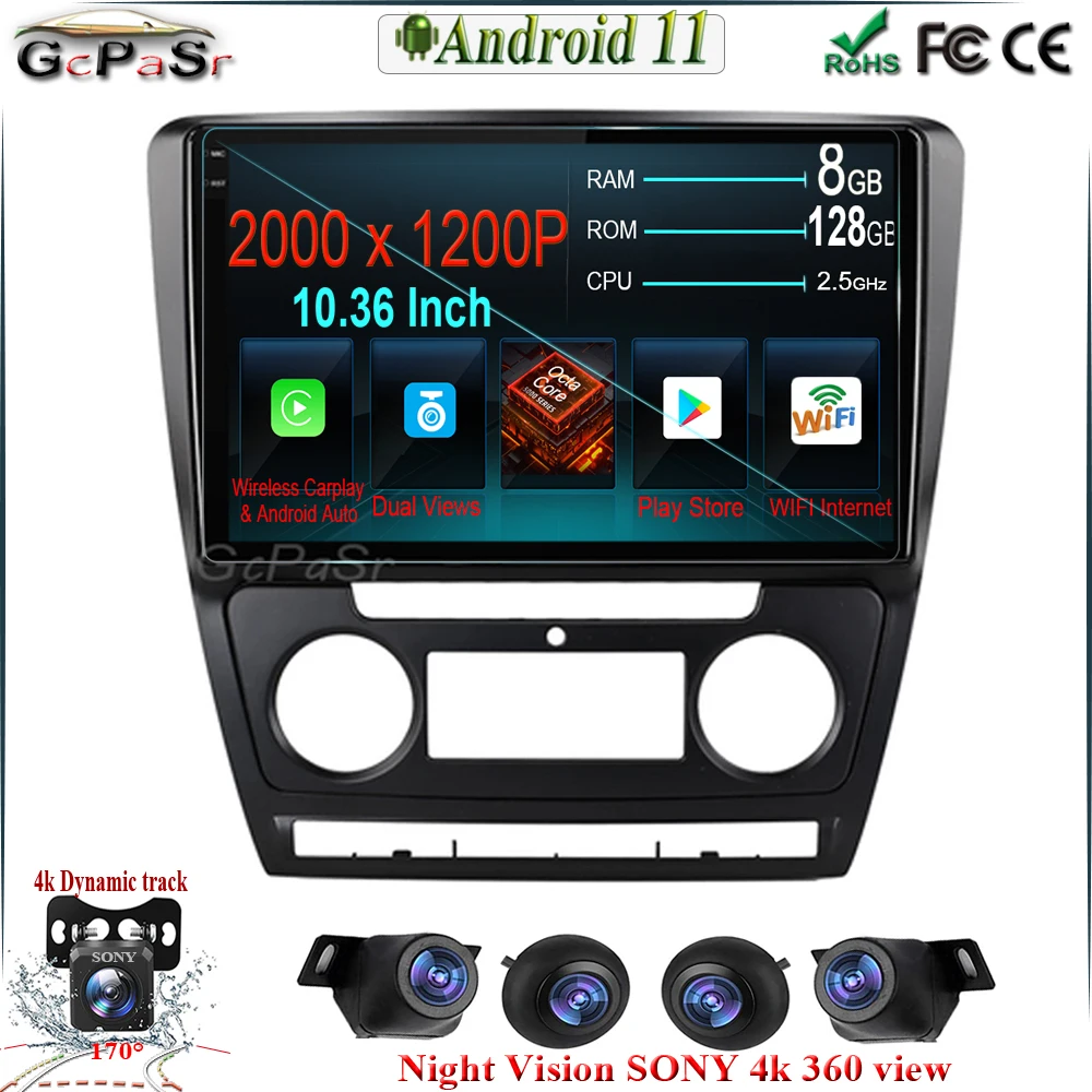 Автомагнитола на Android 11 для Skoda Octavia 2 A5 2008-2013 с сенсорным экраном