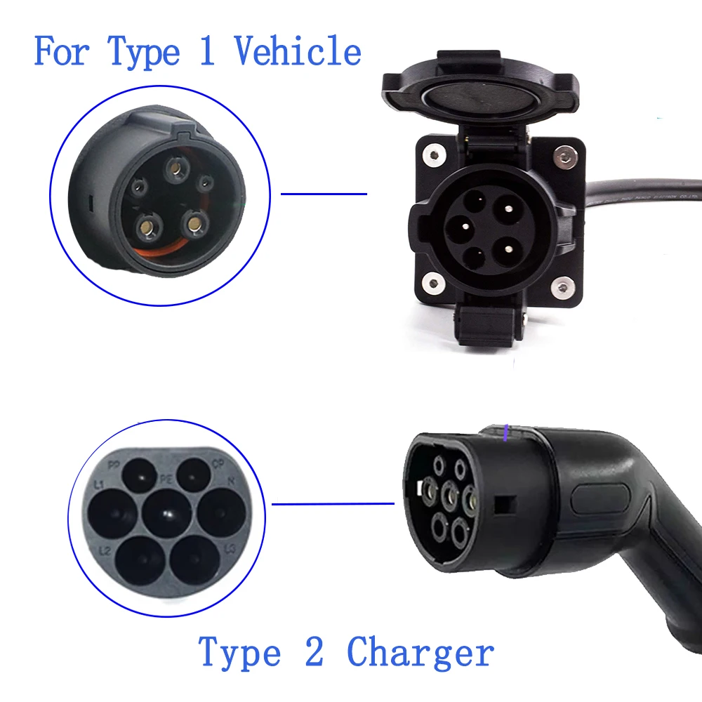 Адаптер для зарядного устройства EVSE 32A для электромобиля, автомобиля, электромобиля, разъем IEC 62196, Тип гнезда 2-тип 1, адаптер зарядного устройства для электромобиля
