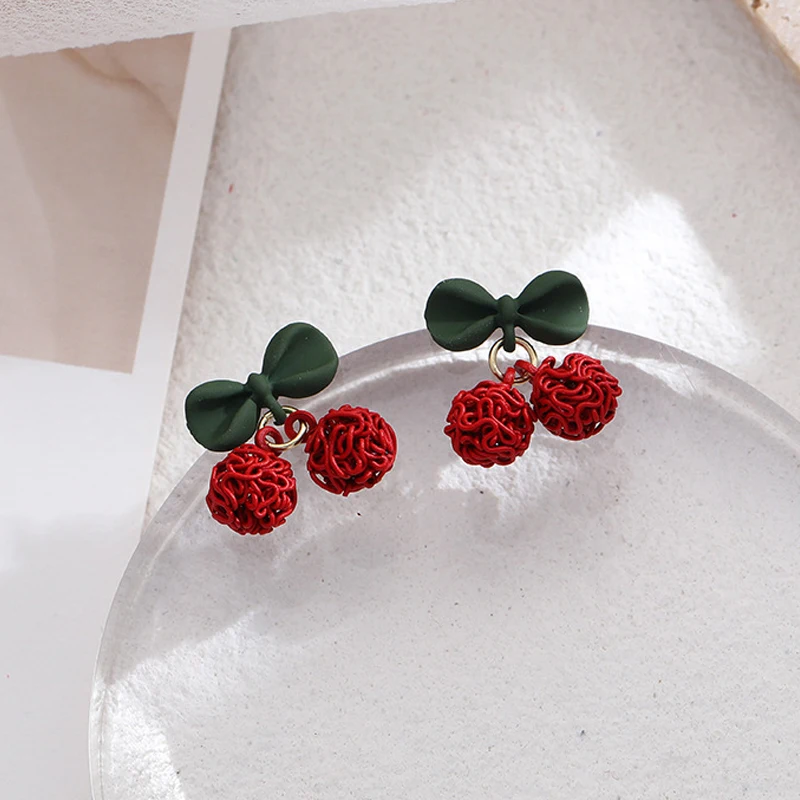 Серьги-шарики женские рождественские, красного цвета, с бантом и сн...