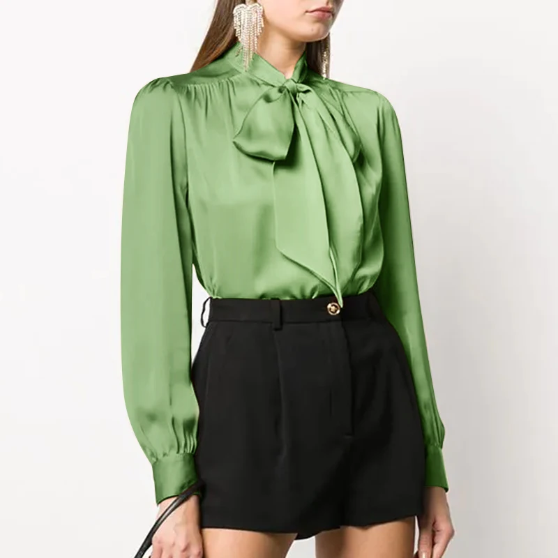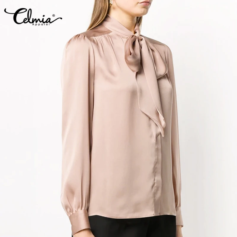 Элегантные атласные блузки Celmia с бантом на шее, офисные дамские осенние женские топы для работы, блузка, повседневные модные рубашки с длинным рукавом, 2022