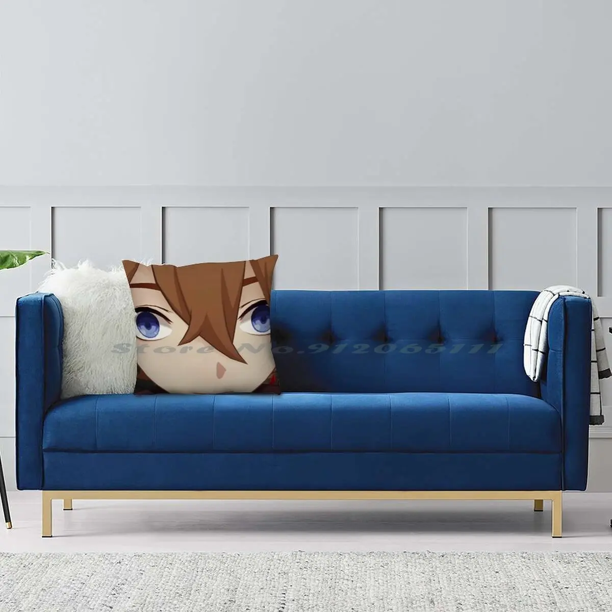 Противоударный чехол для подушки Childe Genshin, наволочка для подушки, хлопчатобумажный льняной клетчатый наволочка Genshin Impact Gacha Mihoyo, безумное лицо