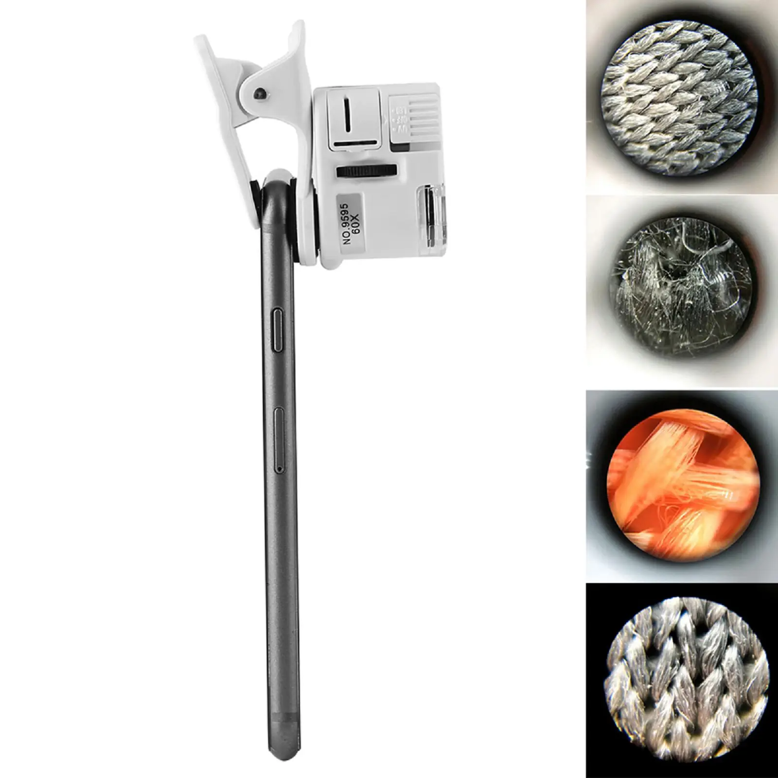 Увеличительное стекло 60X, Универсальный мини микроскоп с зажимом м...
