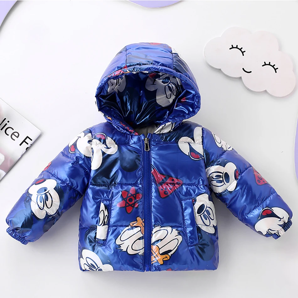 Демисезонный комплект одежды для маленьких девочек и мальчиков Disne, милое хлопковое пальто с капюшоном и принтом Микки Мауса, осенне-зимняя толстовка, куртка