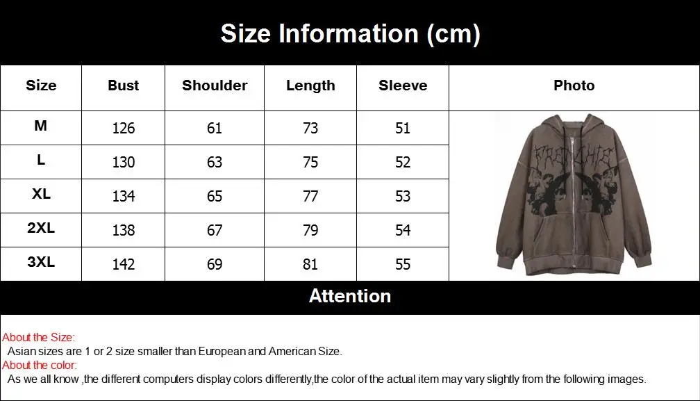 Толстовка МужскаяЖенская Y2K, с капюшоном на молнии, с принтом анге...