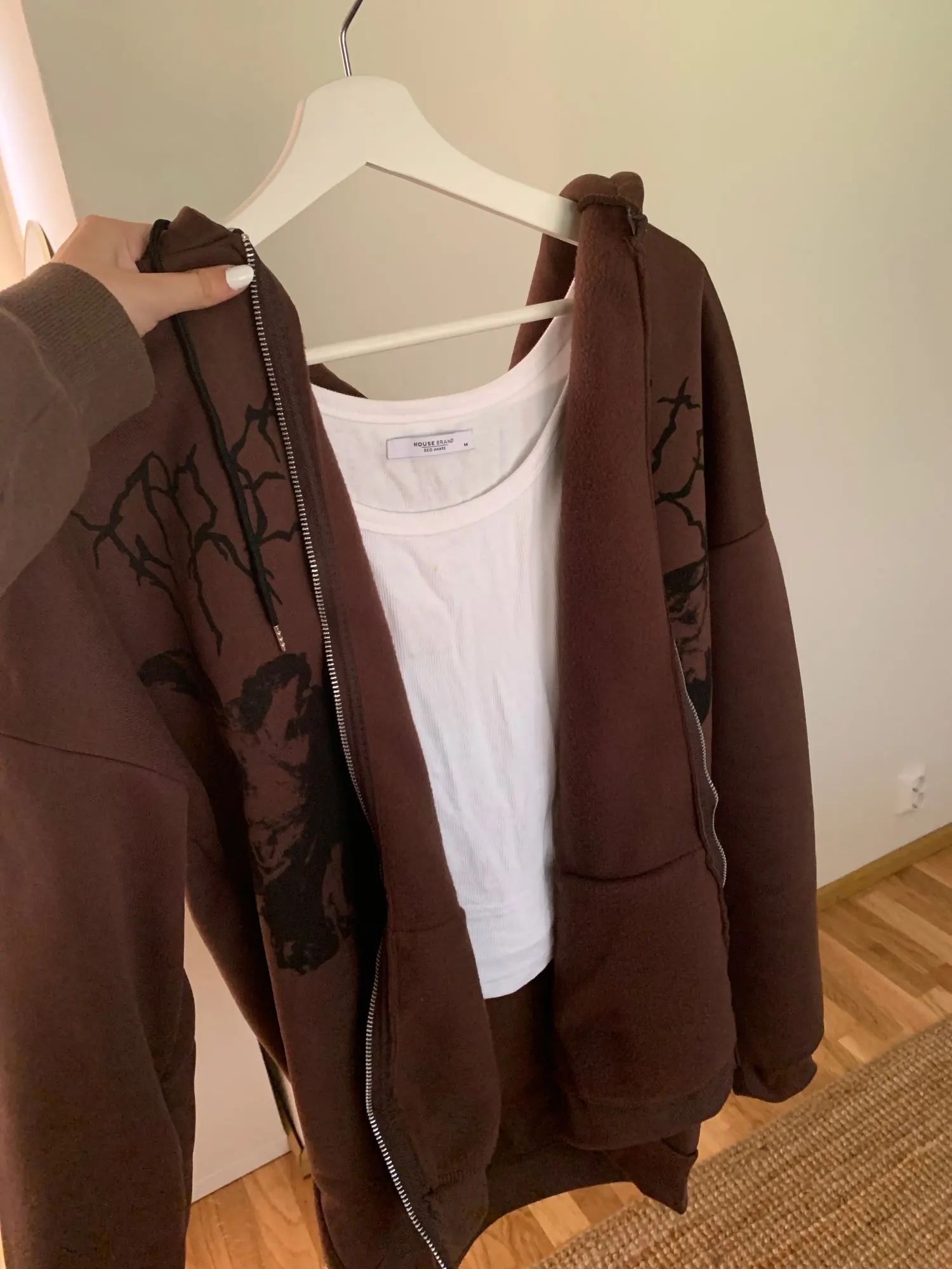 Худи женское оверсайз на молнии с длинным рукавом и принтом