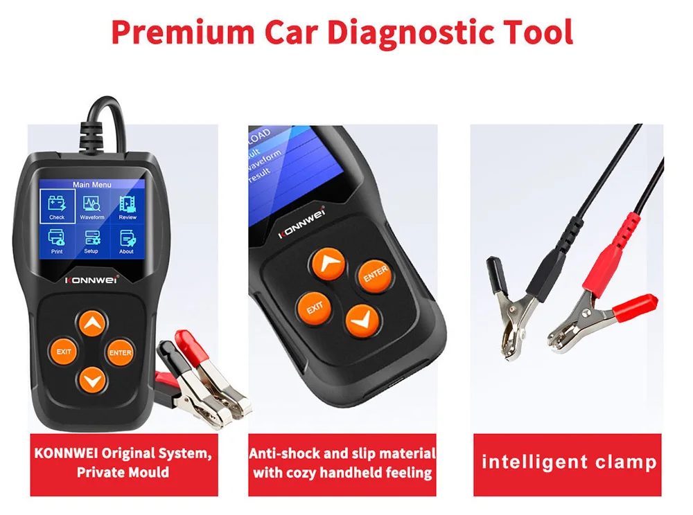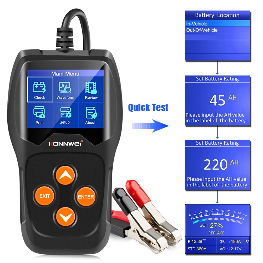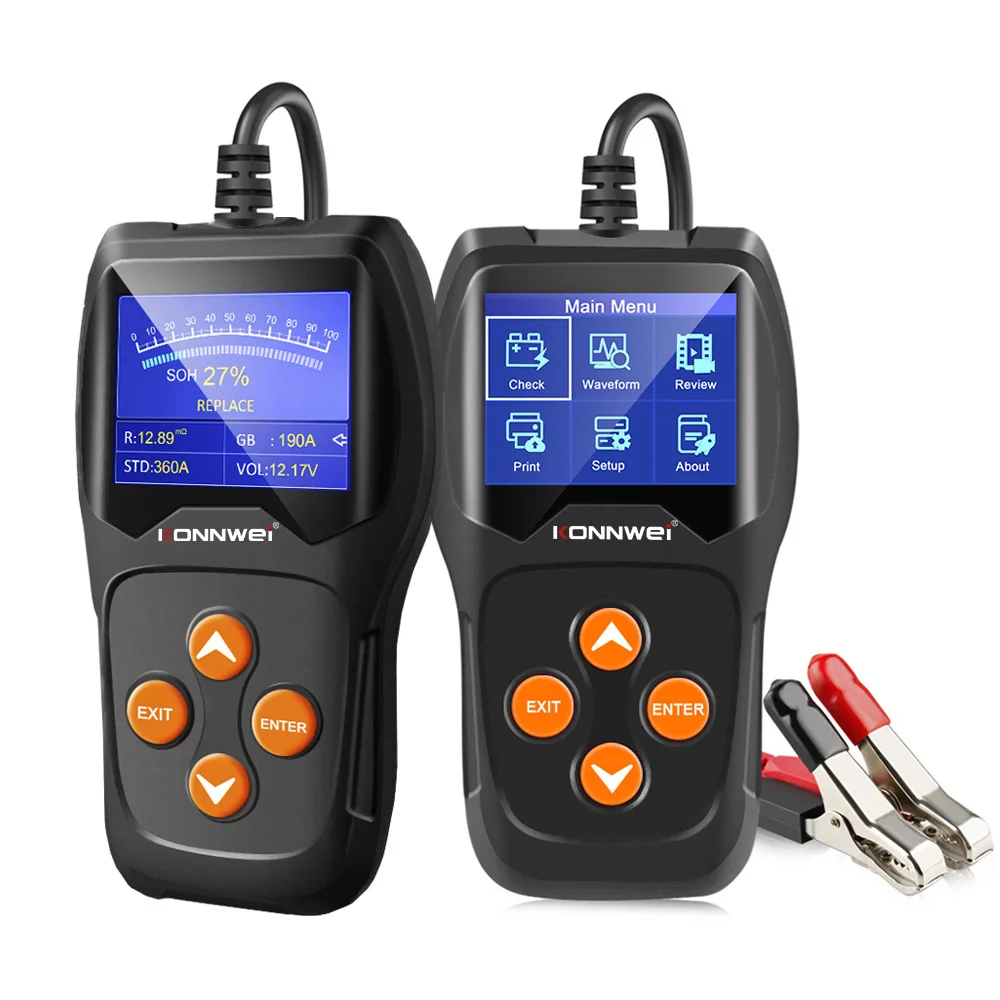 KW600 автомобиля Батарея Тестер нагрузки диагностический инструмент автоматический анализатор для всех 12 вольт для транспортного средства обнаружения неисправностей с несколькими языками поддерживает бесплатного обновленияKONNWEI KW600-это новейший Тестер Аккумуляторов, обновленный от старого классического тестера с подсветкой на рынке, направленный на быструю и точную проверку здоровья батареи, а также на проверку состояния работы генератора. Это профессиональный диагностический инструмент транспортного средства для проверки проблем с системой батареи с помощью инструмента мониторинга напряжения с графическим изображением, с цветным экраном и уникальным дизайном узора, бесплатным обновлением в течение всего срока службы, KONNWEI KW600-идеальный инструмент для тестирования батареи для вашей работы и семьи.