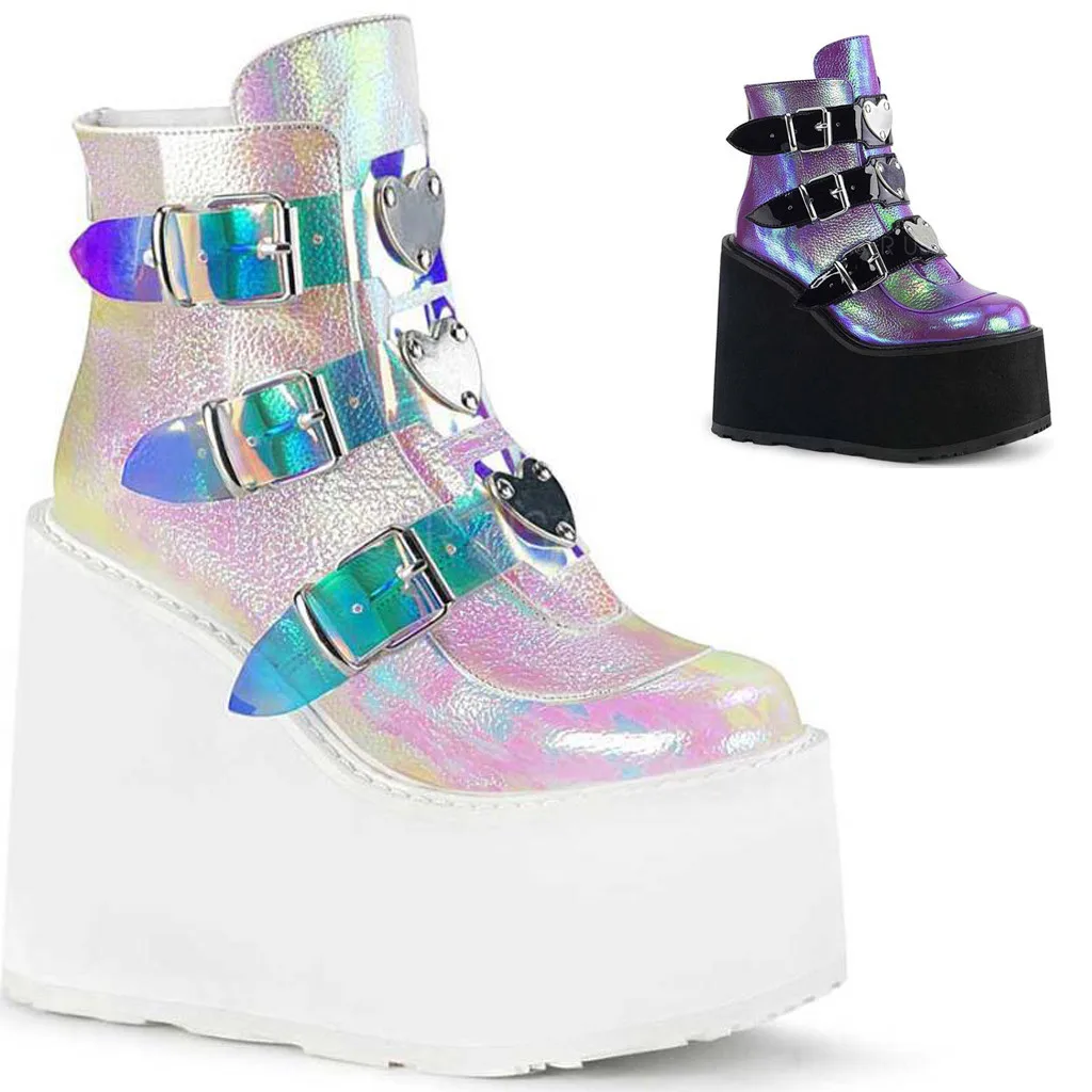 Дизайнерские женские ботильоны на высокой платформе, модные ботинки на молнии, со шнуровкой, женские ботинки на высоком каблуке, 2021, женская обувь на танкетке в готическом стиле